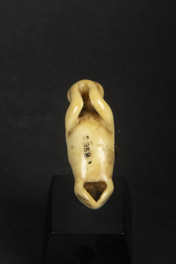 Un numéro d'inventaire à l'encre noire et partiellement effacé (2958..) est visible sur la partie antérieure de la figure au niveau du ventre.