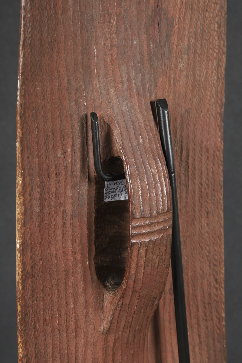 Ce bouclier de forme ovale allongée est taillé dans un bois mi-dur (Hakea ioria ou Brachychiton gregorii). Le nom wunda caractérisant ce type de bouclier dériverait du mot paljgu « wunrnda » désignant un bois dont on faisait à l’origine ce bouclier.