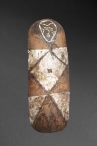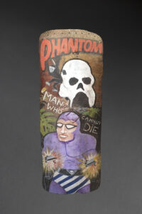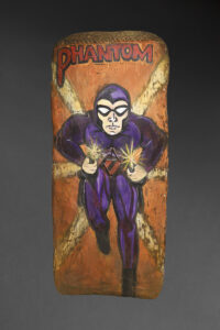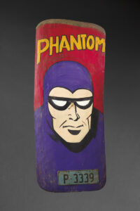 This Papuan war shield with a painted depiction of “The Phantom” comics superhero is a great example of cross-cultural influences in the Highlands of Papua New Guinea.