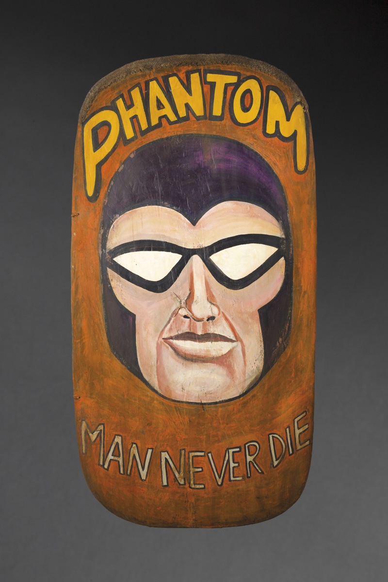 As stated by the Museum of New Zealand Te Papa Tongarewa, from the 1980s – 1990s the Phantom re-emerged on Highlands battle shields during a revival of inter-tribal fighting. In this period, the Wahgi people revived and repainted old battle shields with new designs that transformed the shields into communicative forms. By incorporating the image of the Phantom on a shield, warriors hoped to capture some his symbolic power and incite fear amongst their opponents. The Phantom, an immortal superhero carrying firearms and wearing a skull symbol on his belt was indeed seen as an inspiring and projective figure for Papua New Guinea warriors.