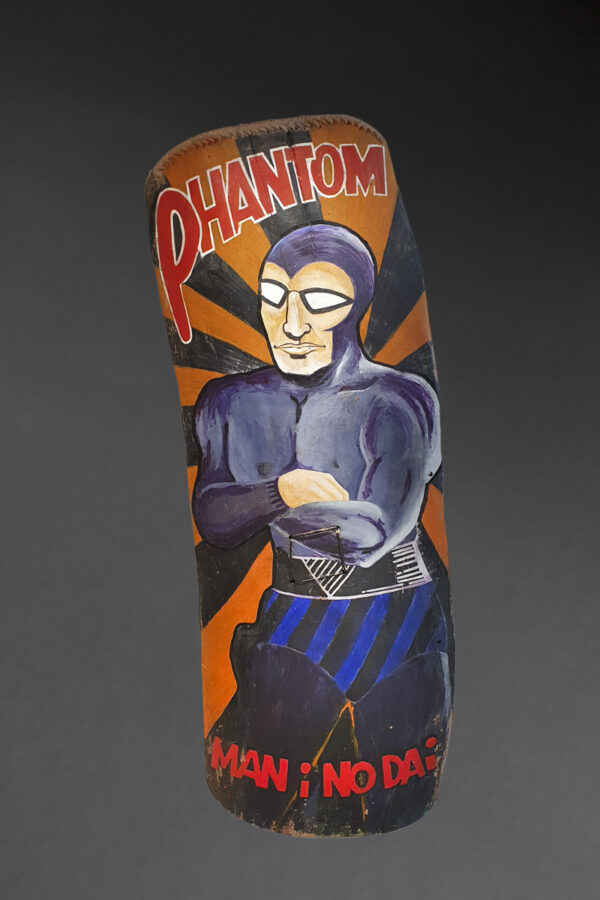 This Papuan war shield with a painted depiction of “The Phantom” comics superhero is a great example of cross-cultural influences in the Highlands of Papua New Guinea.