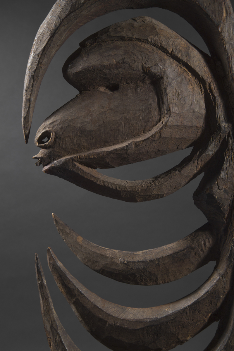 With its powerful formal values, this sculpture – called a yipwon – presents the classic characteristics of the way the human figure was represented in the ancient art of the Korewori area in the Middle Sepik region.