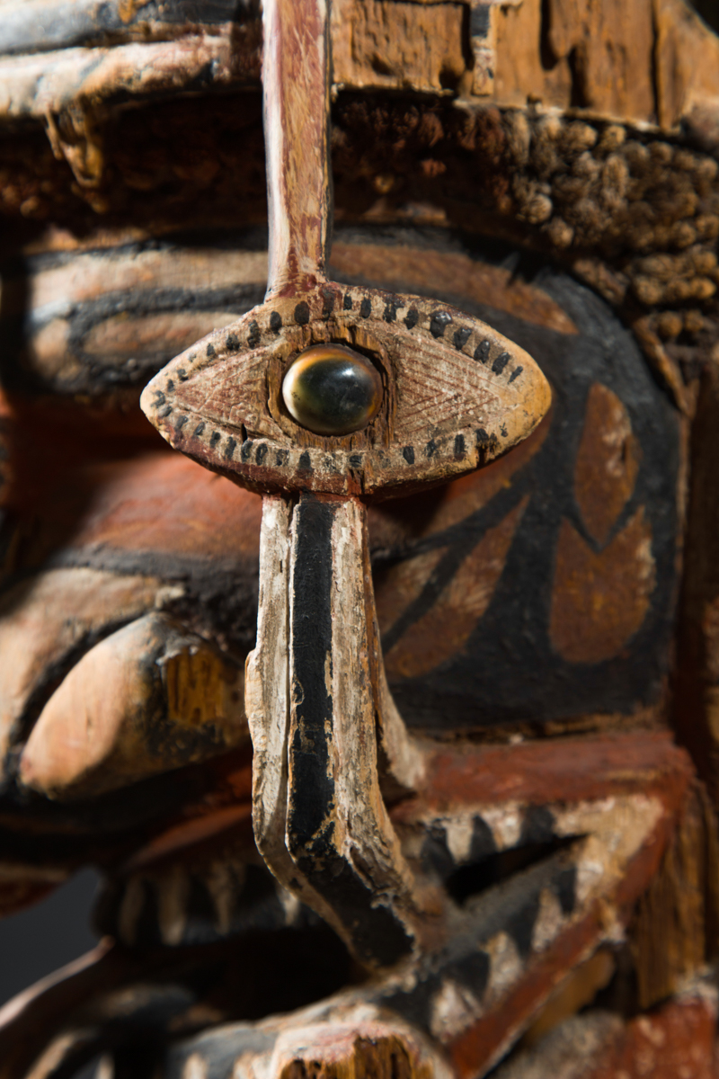 On this superb, large headdress, the juxtaposition of negative and positive space and two-dimensional sculptural design is superb.