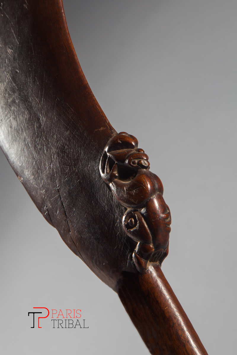Published: Voyages… From the North Pacific to the South Pacific in the wake of Captain Cook, 2019Goggles with slits of different sizes were chosen to match climatic conditions (in particular according to the incidence and intensity of the sun’s rays as they varied with the seasons over the course of the year). Carved goggles like these have outfitted hunters/fishermen since the most ancient times, as goggles of the same type in marine ivory or bone have been found on archeological sites (Old Bering Sea cultures).