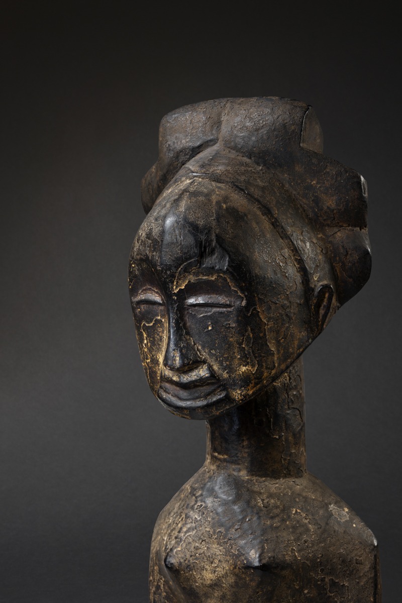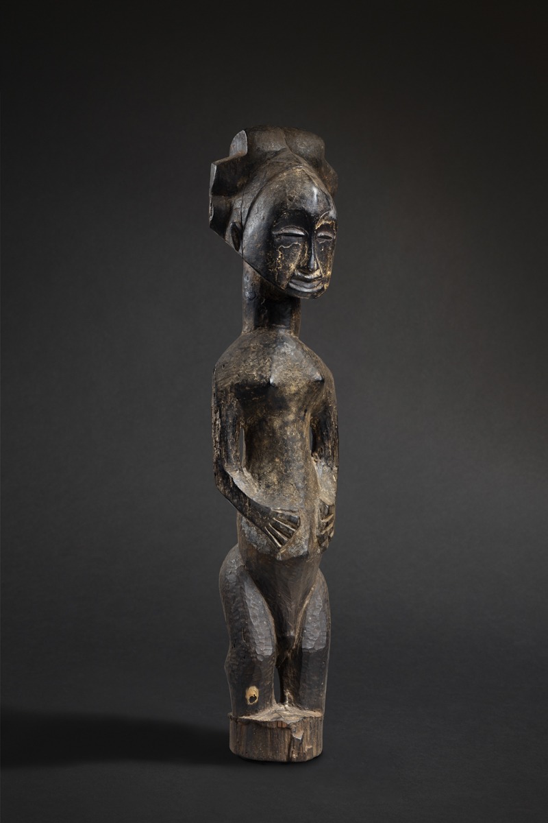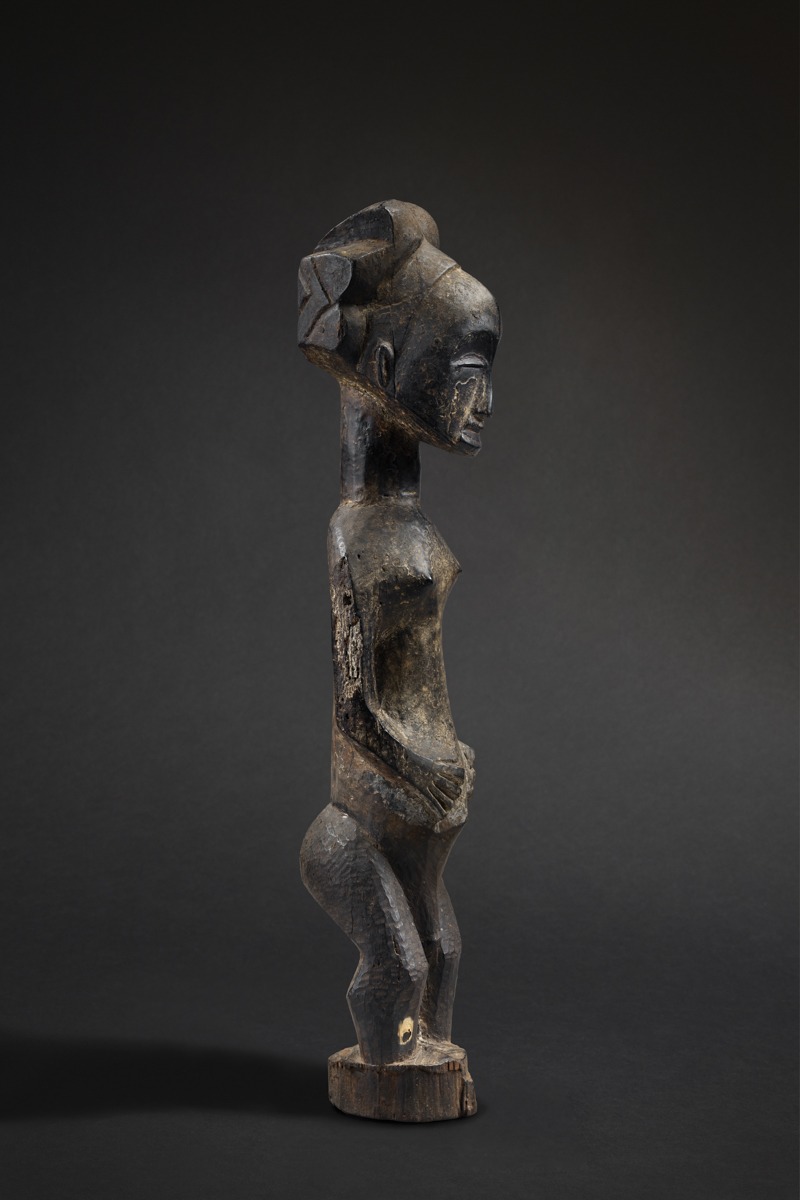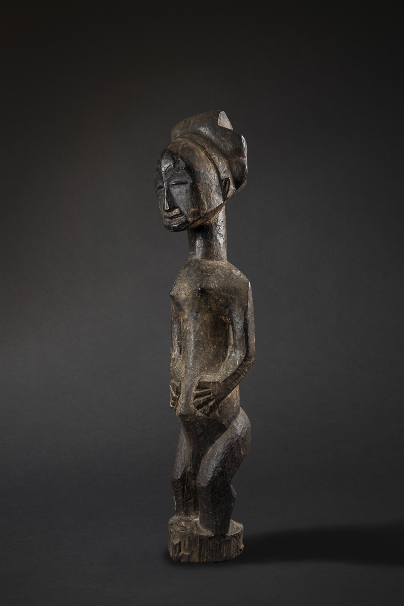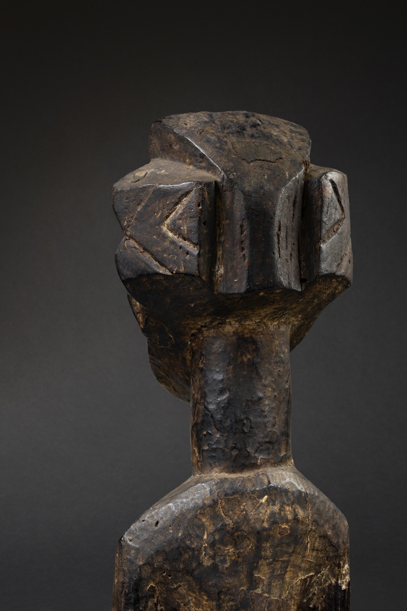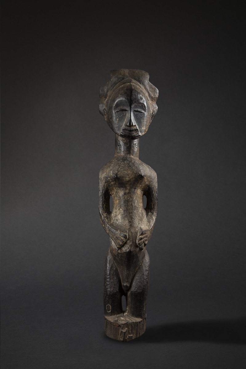 This 86.5 cm (34 in.) tall sculpture originates from the northern Hemba region, near the Kusu and Bassikasingo. Its composition combines both power and harmony.