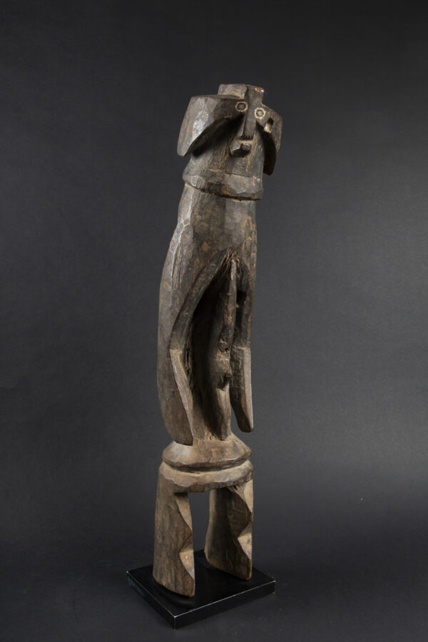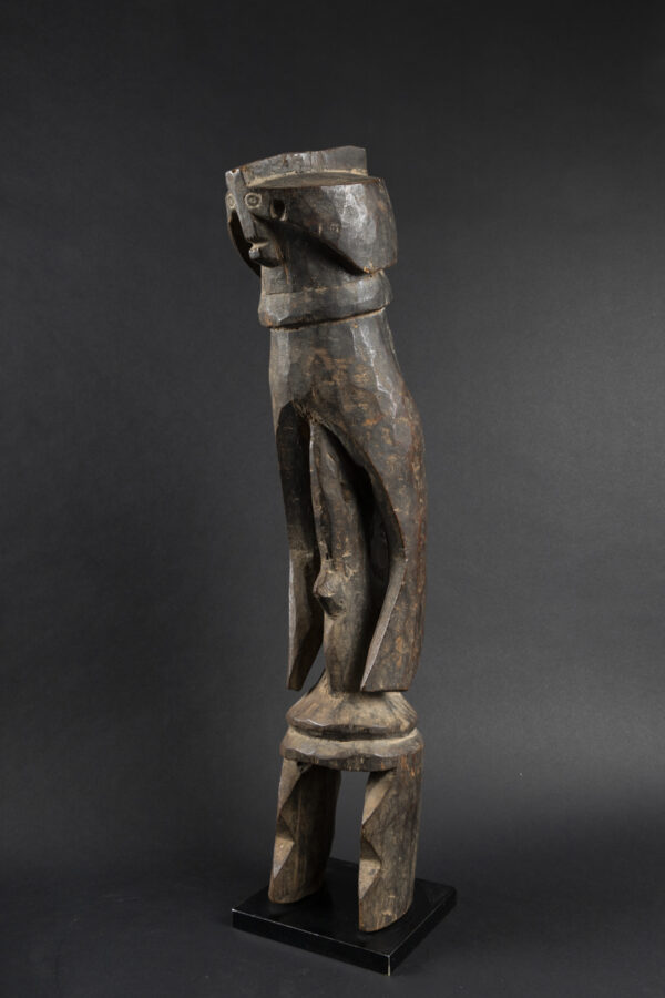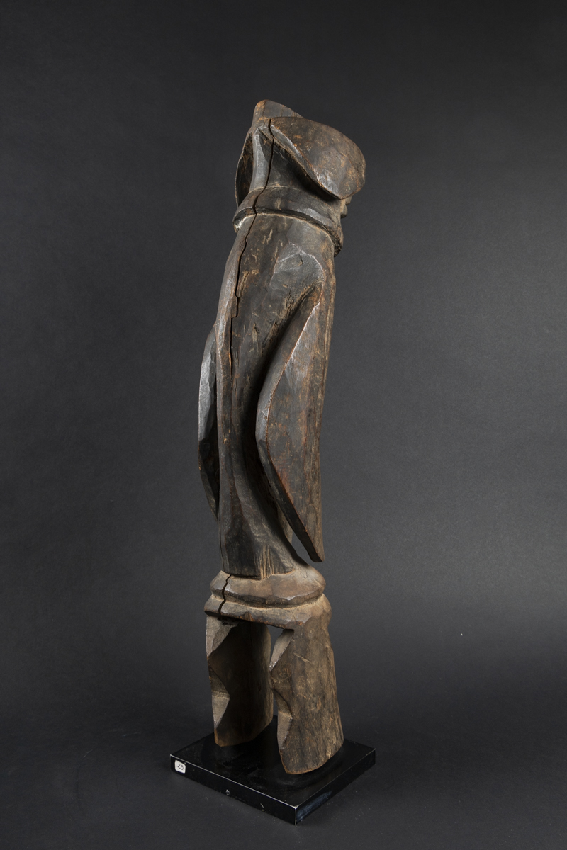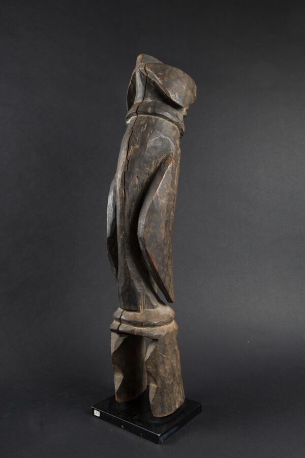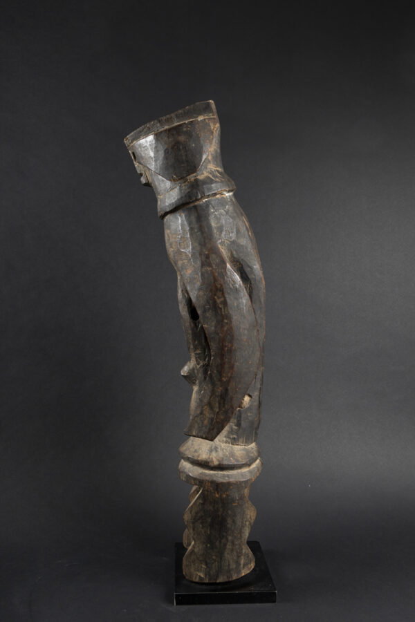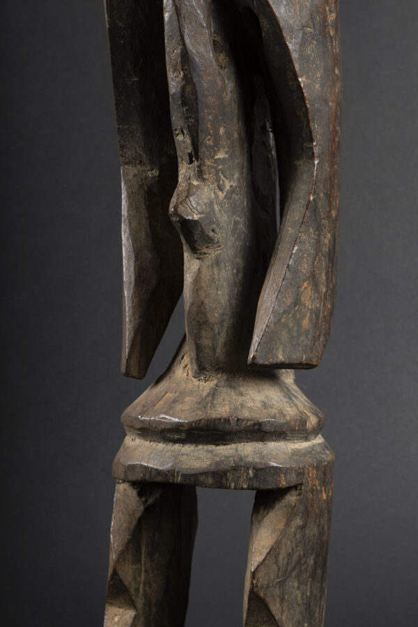 This large figure is characterized by its remarkable dynamism, reinforced by the angular breaks in the rhythm of the piece that are so characteristic of Mumuye art.