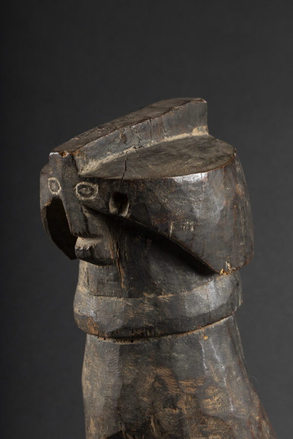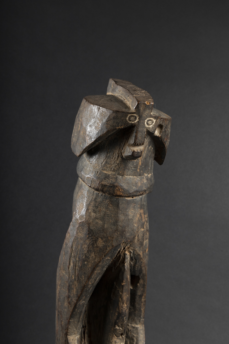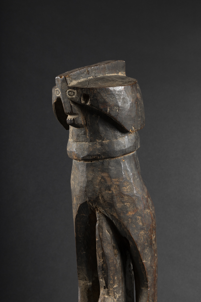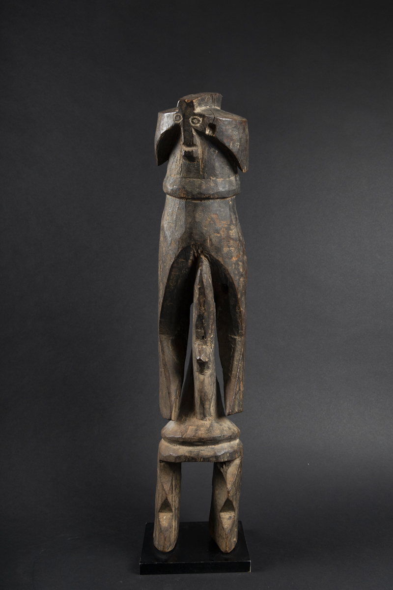 This large figure is characterized by its remarkable dynamism, reinforced by the angular breaks in the rhythm of the piece that are so characteristic of Mumuye art.