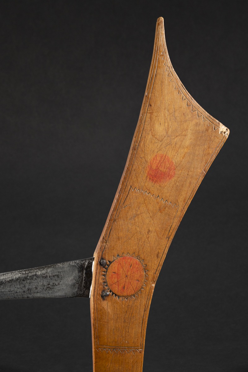 Employed in close combat across much of the 19th century and closely associated with Sioux, Pawnee, and Osage fighters, the club could deliver crushing blows, deflect attacks, or pierce with its inserted blade. At once practical and emblematic, it became a weapon feared on the battlefield and admired for its craftsmanship.