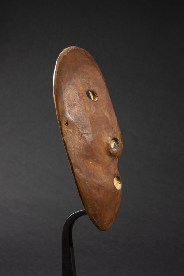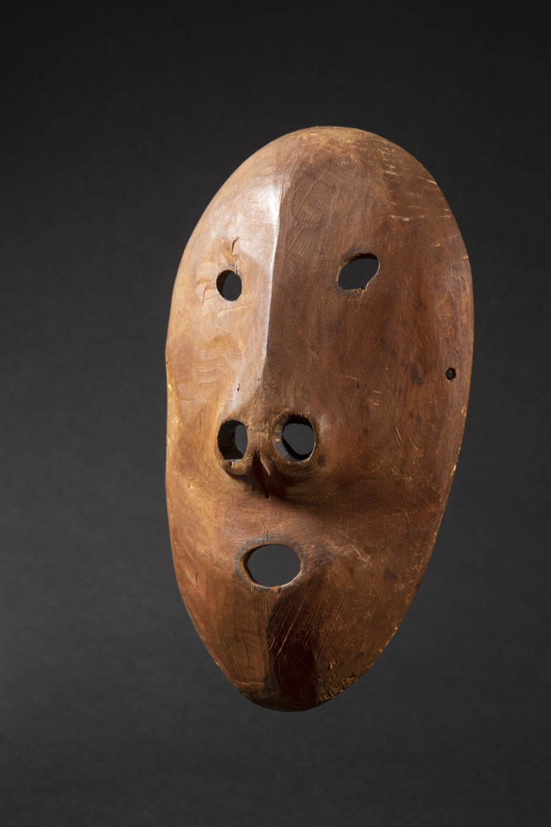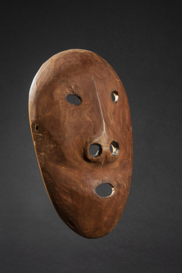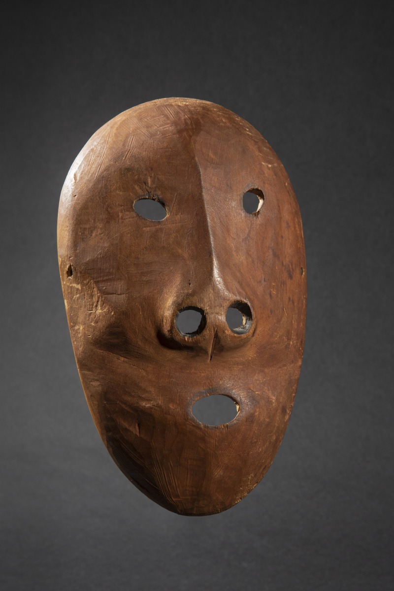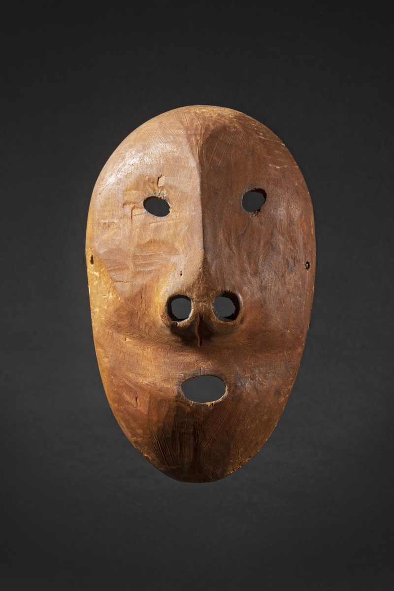 The Subarctic region inhabited by the Iniupiaq (Eskimo) peoples in Alaska is well supplied with land and sea resources allowing for much time that could be devoted to a full ceremonial life. After freezeup in the winter, performance cycles were undertaken that were important to maintaining proper human, animal and spirit-world interactions. These ritual and shamanic ceremonies took place in the Men’s House (qasaiq). During masked ceremonies, shamans, under the protection of their animal-guides entered into a trance to communicate with the spirit world. Before leaving on a hunt, men also had to observe a certain number of dictates to assure themselves of the beneficial support of tutelary spirits, the « masters » of game animals.
