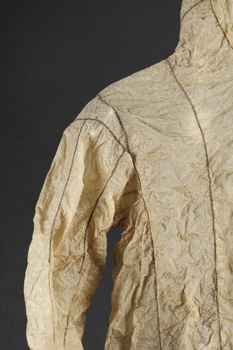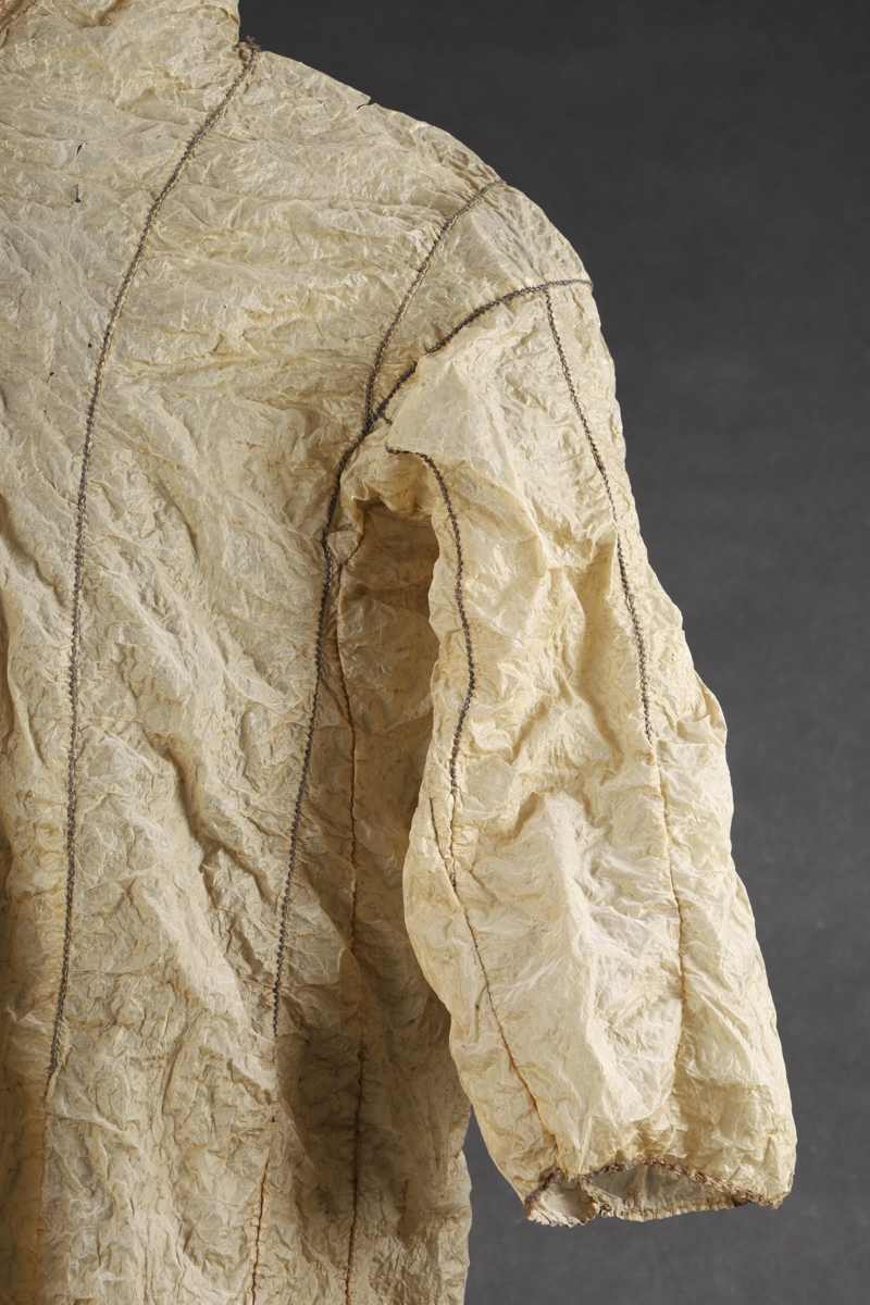 To make a waterproof parka, the Inuit seamstress cuts the intestines into the required lengths and sews it aligned vertically or horizontally according to function or locale. She uses a waterproof stitch that does not penetrate any part of the garment exposed to moisture.