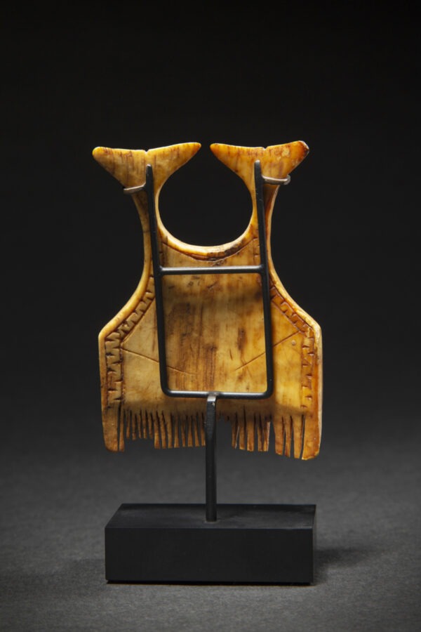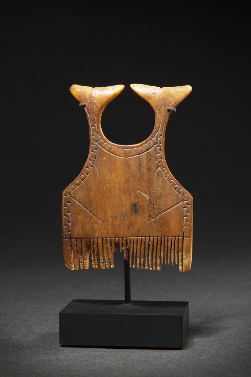 This carving was first a utilitarian artefact: the comb was notably used in the preparation of bear fur and skins, as well as for combing hair.