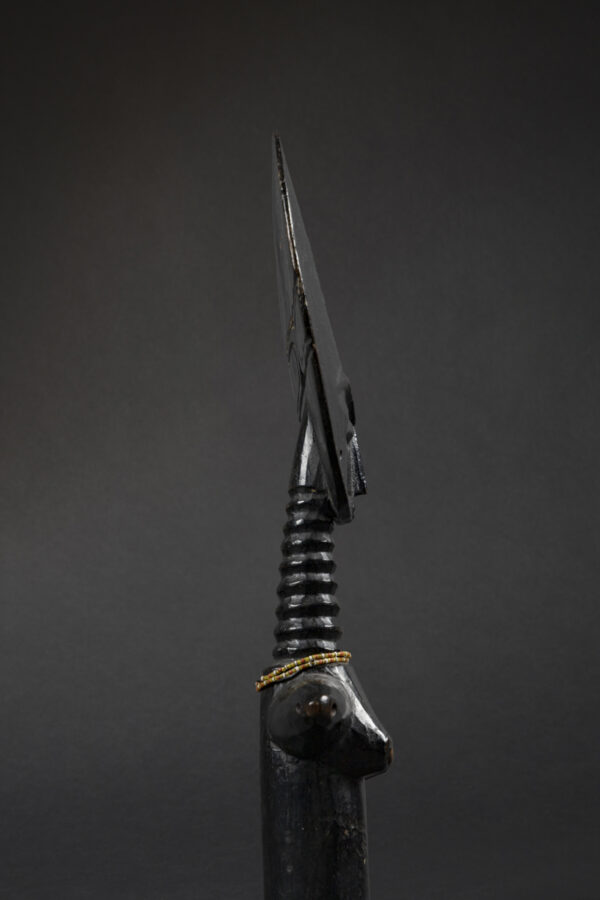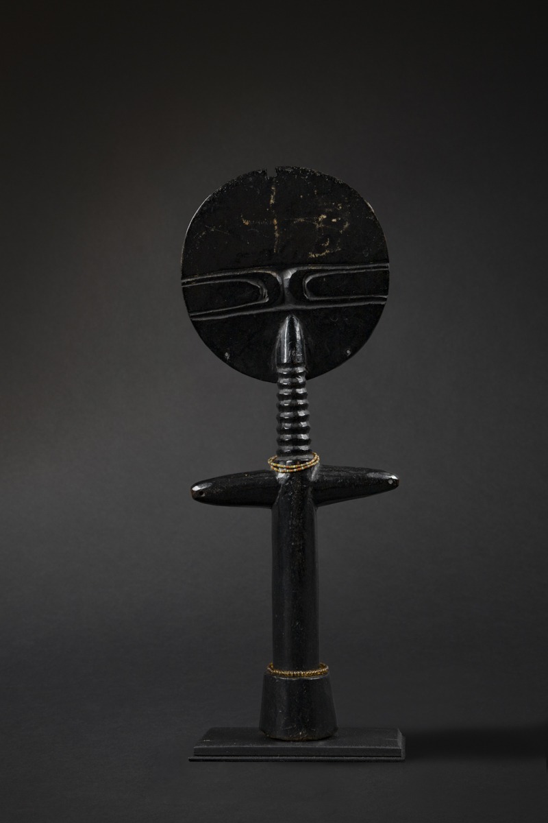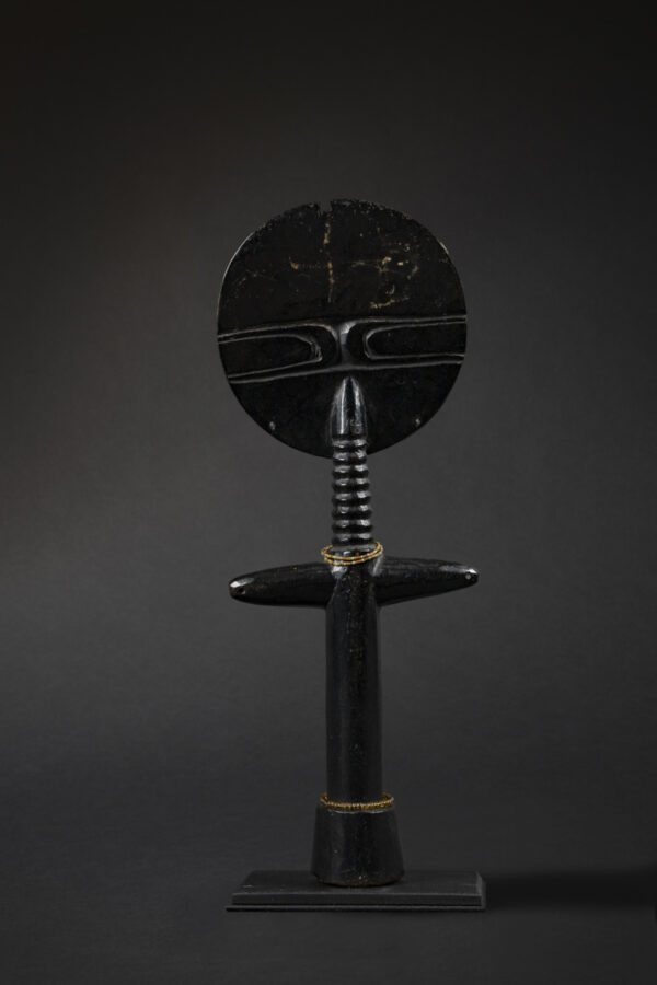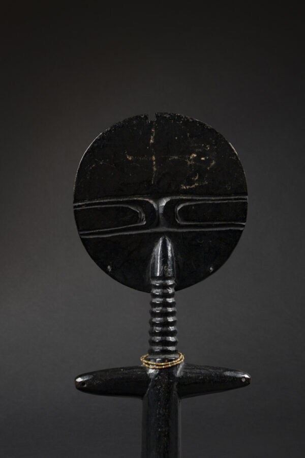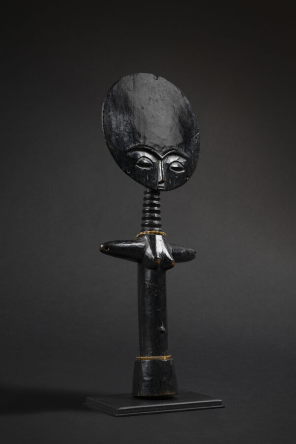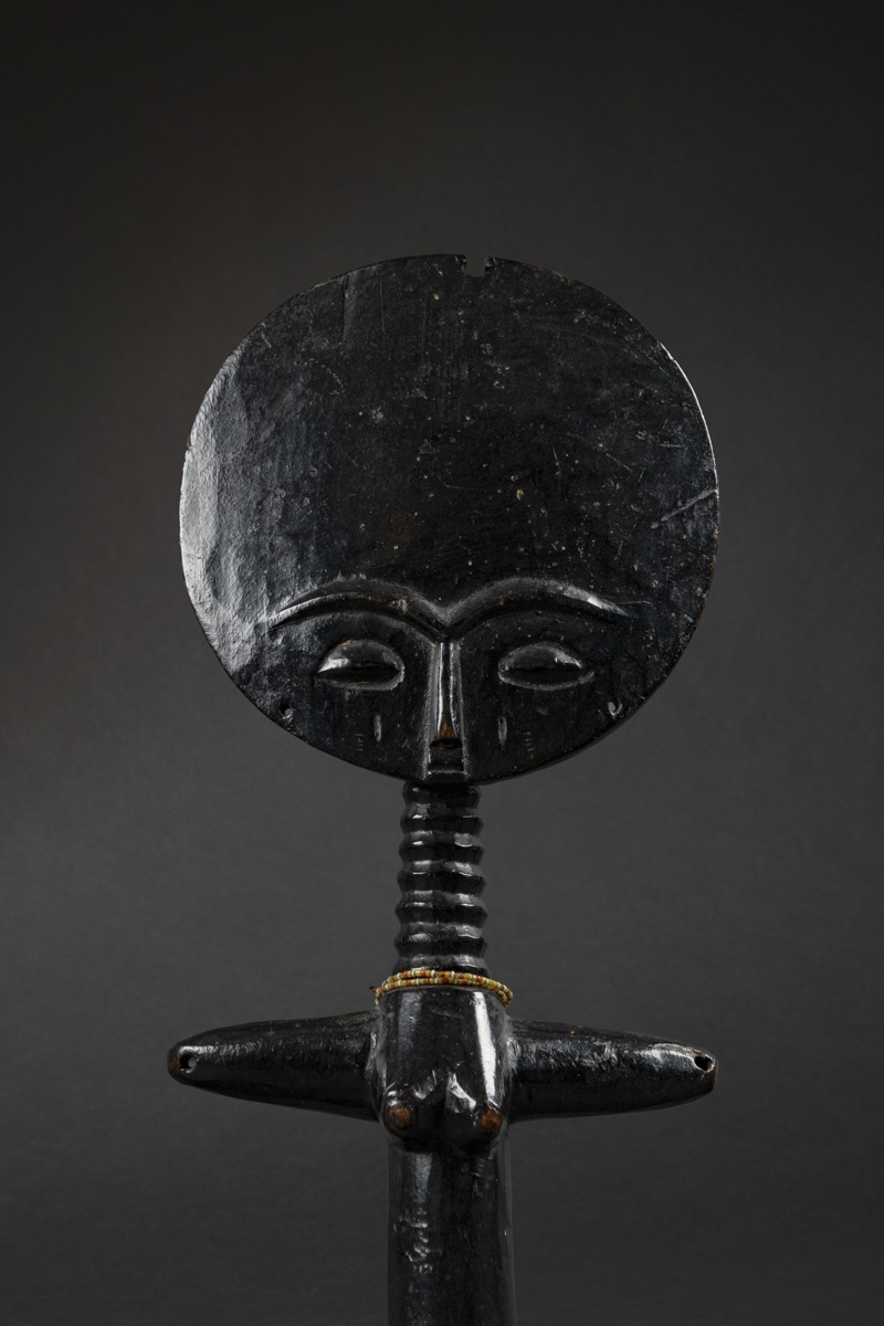 In terms of symbolism, the flat, disk-like head represents an ideal of beauty. The ringed neck is a symbol of beauty and prosperity. The small scars seen on the face of the akua’ba were made for medicinal purposes as protection against convulsions.