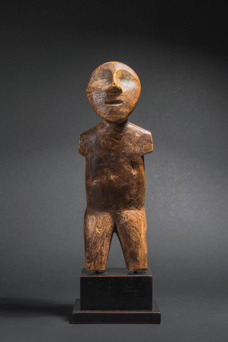 This type of minimalist human figure falls within a stylistic continuum tracing back to the earliest statuary traditions in Eskimo art.
