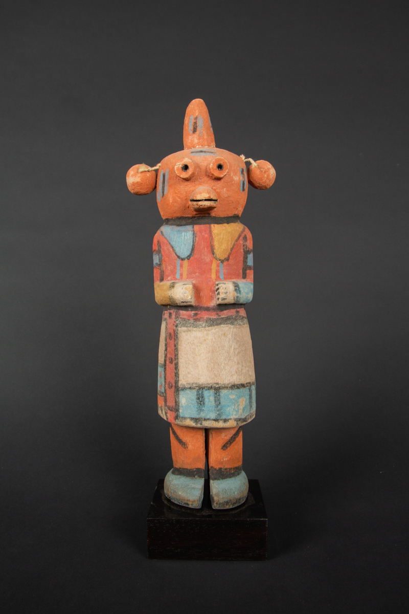Les poupées kachina (katsinam) représentent les esprits ou dieux du panthéon des Indiens Pueblo du Sud-Ouest des États-Unis. Offertes aux enfants, les kachinas constituaient un outil pédagogique leur permettant de se familiariser avec le monde spirituel et de perpétuer la connaissance des mythes fondateurs au sein de la société.