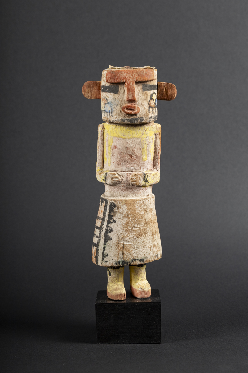Les poupées Kachina (Katsinam) représentent les esprits ou dieux du panthéon des Indiens Pueblo du Sud-Ouest des États-Unis. Offertes aux enfants, elles constituaient un outil pédagogique leur permettant de se familiariser avec le monde spirituel et de perpétuer la connaissance des mythes fondateurs au sein de la société.
