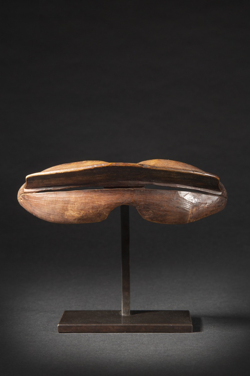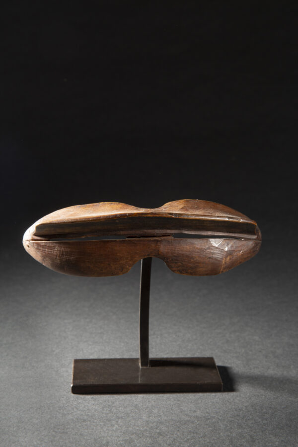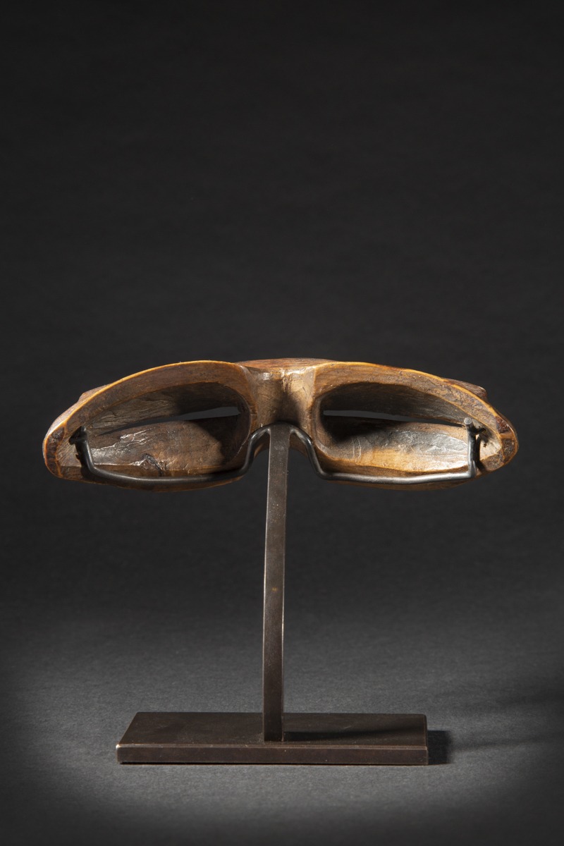 These goggles called Igauget in the dialects of Alaska, were carved so as to echo as closely as possible the shape of the face, and minimize luminosity to a maximum – hence the narrowness of the openings for the eyes. The width of these openings had a direct influence on the wearer’s visual field. According to the Inuit, the more the visual field was reduced, the more visual acuity was accentuated.