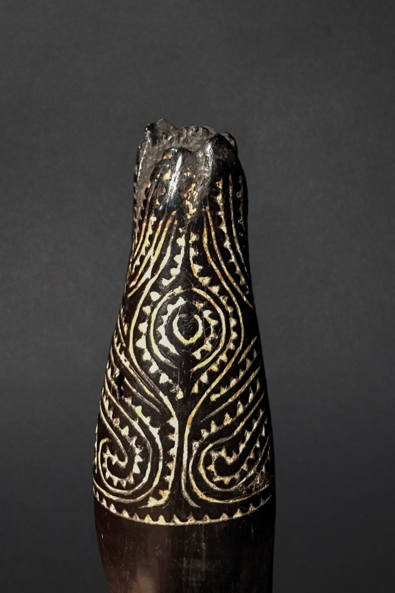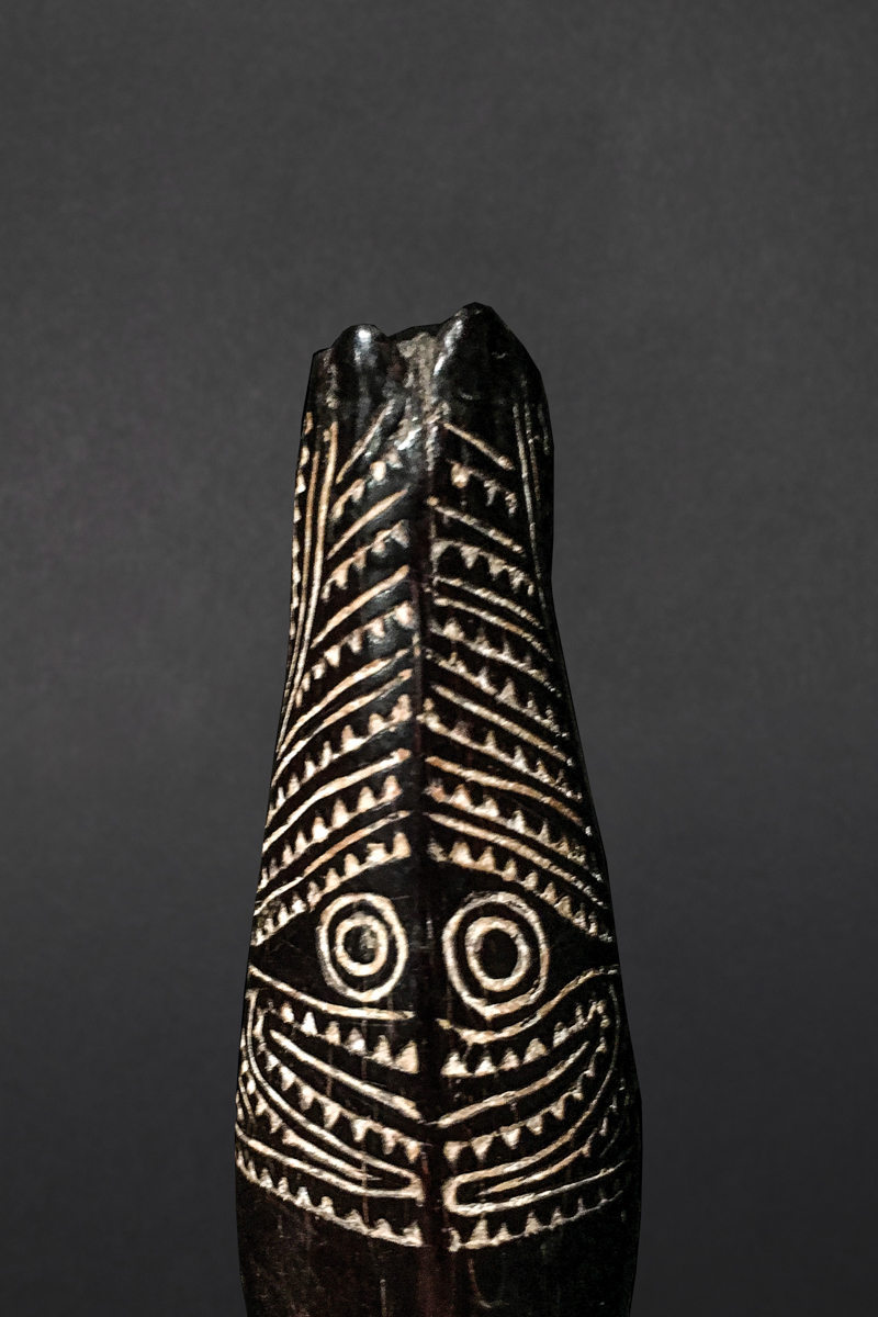 Ce charme marupai du Golfe de Papouasie se distingue par son raffinement, sa superbe patine et la minutie de son iconographie.