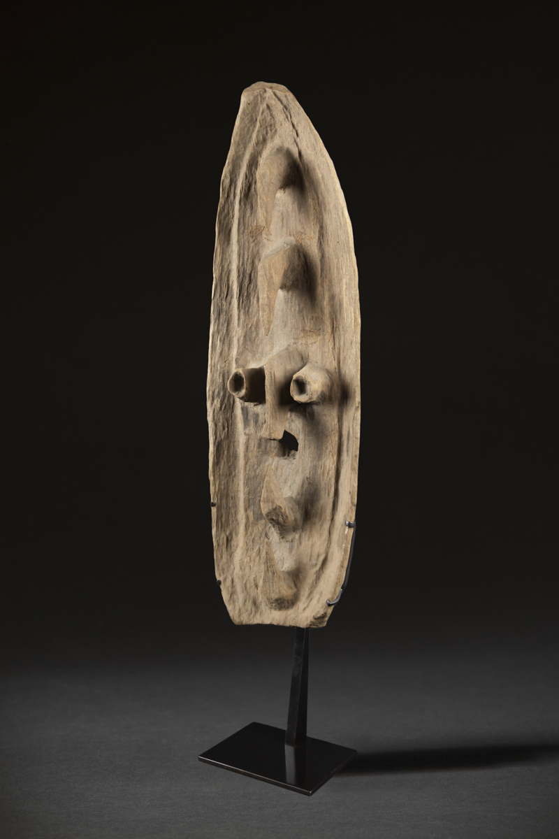 In the region of the Hunstein Mountains, upriver on the Sepik River and west of the Korewori, garra hooks depict powerful spirits. They were used during initiations by the Bahinemo populations.