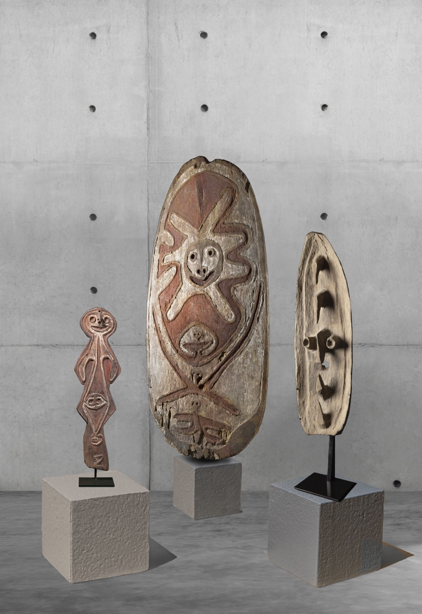 As stated by the Metropolitan Museum of Art, stylistically Bahinemo wood sculpture forms part of a broader tradition within Sepik art which incorporates serial distributions of concentric and opposing hook features, the most widely renowned being the highly-abstracted yipwon figures produced by the Yimam peoples further east. Admired by European modernists for their radical re-conception of the human form, these distinctive sculptures caused a sensation in the 1950s when the first examples became known outside the region. Bahinemo examples fall broadly into two categories: flat, mask-like panels with stylized human faces that are bracketed by small hook features (see Metropolitan Museum inv. 1978.412.1526) and tall, slender images intended to be seen in profile, which comprise a series of large concentric hooks around a central triangular or oval projection (see Metropolitan Museum inv.1976.248.2).