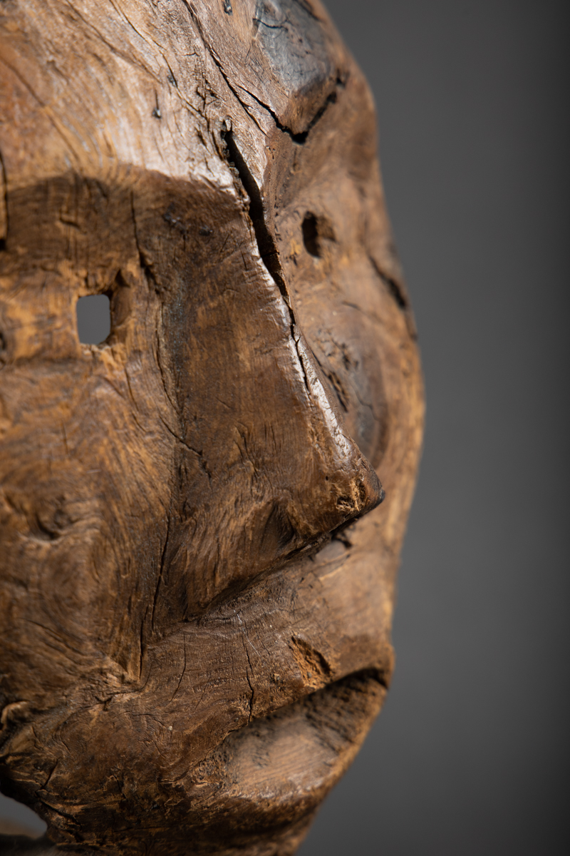 The Subarctic region inhabited by the Yup’ik Eskimo in Alaska is well supplied with land and sea resources allowing for much time that could be devoted to a full ceremonial life. After freezeup in the winter, performance cycles were undertaken that were important to maintaining proper human, animal and spirit-world interactions. These ritual and shamanic ceremonies took place in the Men’s House (qasaiq). During masked ceremonies, shamans, under the protection of their animal-guides entered into a trance to communicate with the spirit world.