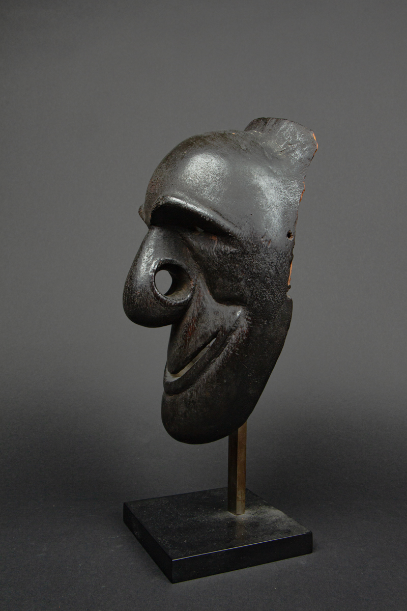 Regardless of the chubwan’s enigmatic function, the artist skilfully created a face that would frighten and intimidate. As Felix Speiser, a visitor to the area in 1910, noted in his book Ethnology of Vanuatu: ‘… such a face, seen in the semi-darkness of the forest by the light of flickering torches, must have had a frightful enough effect’.