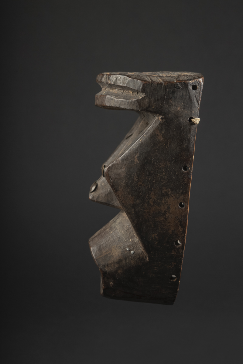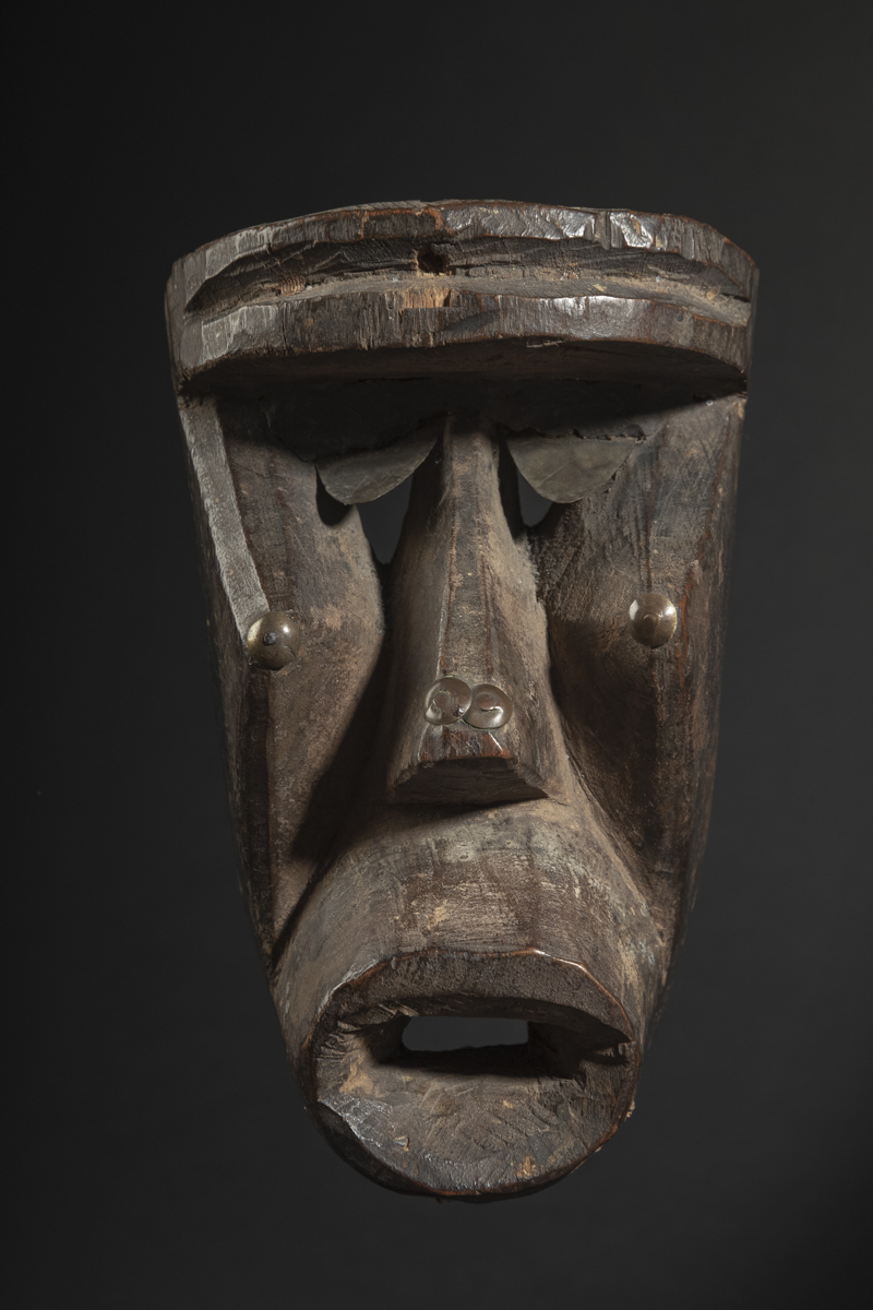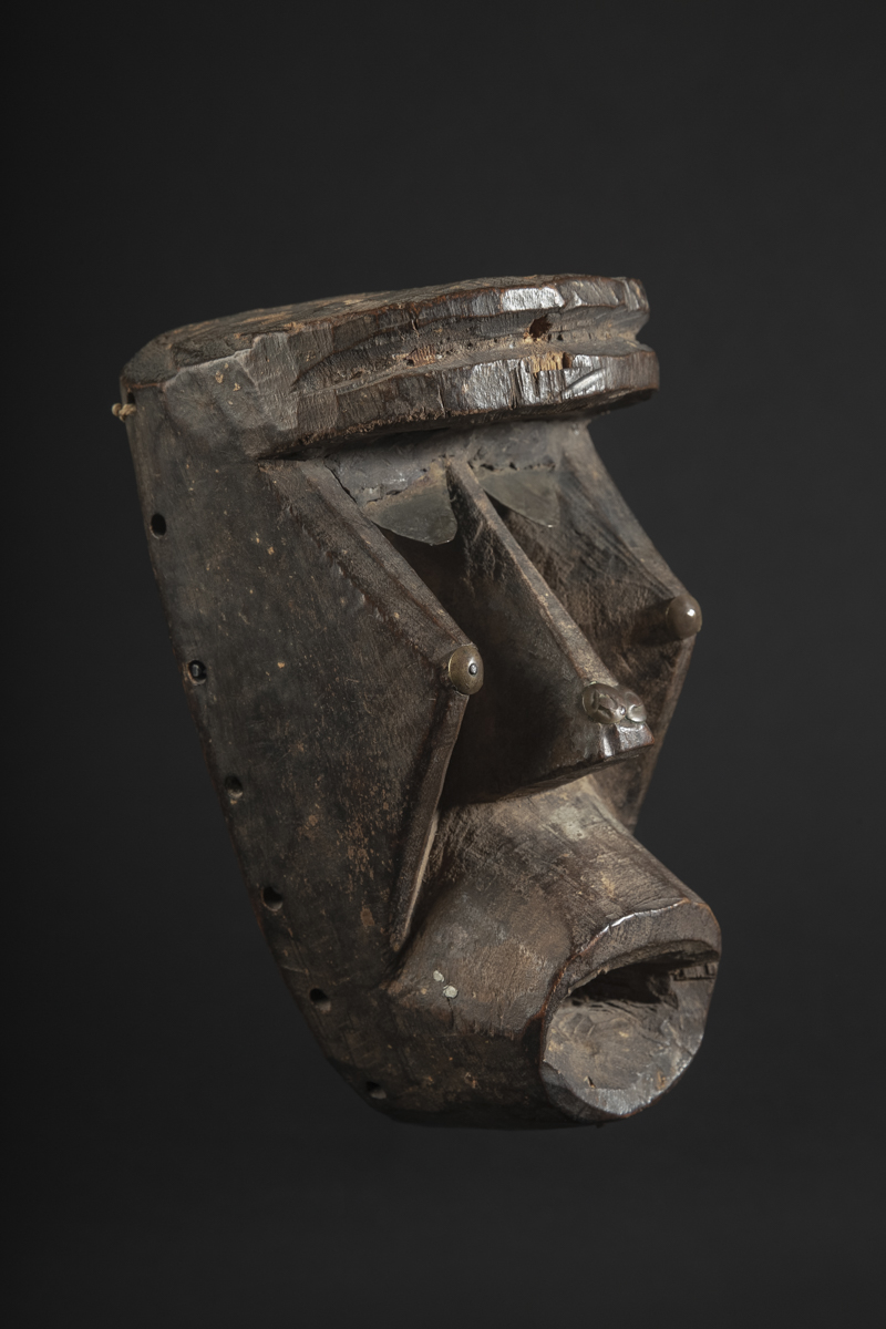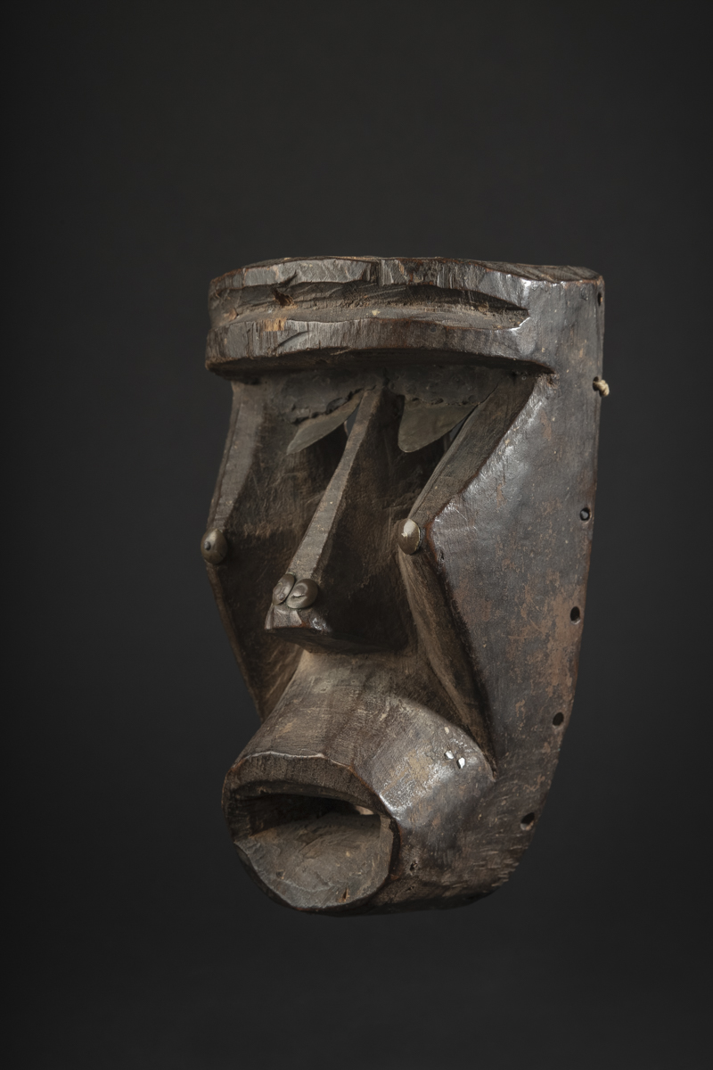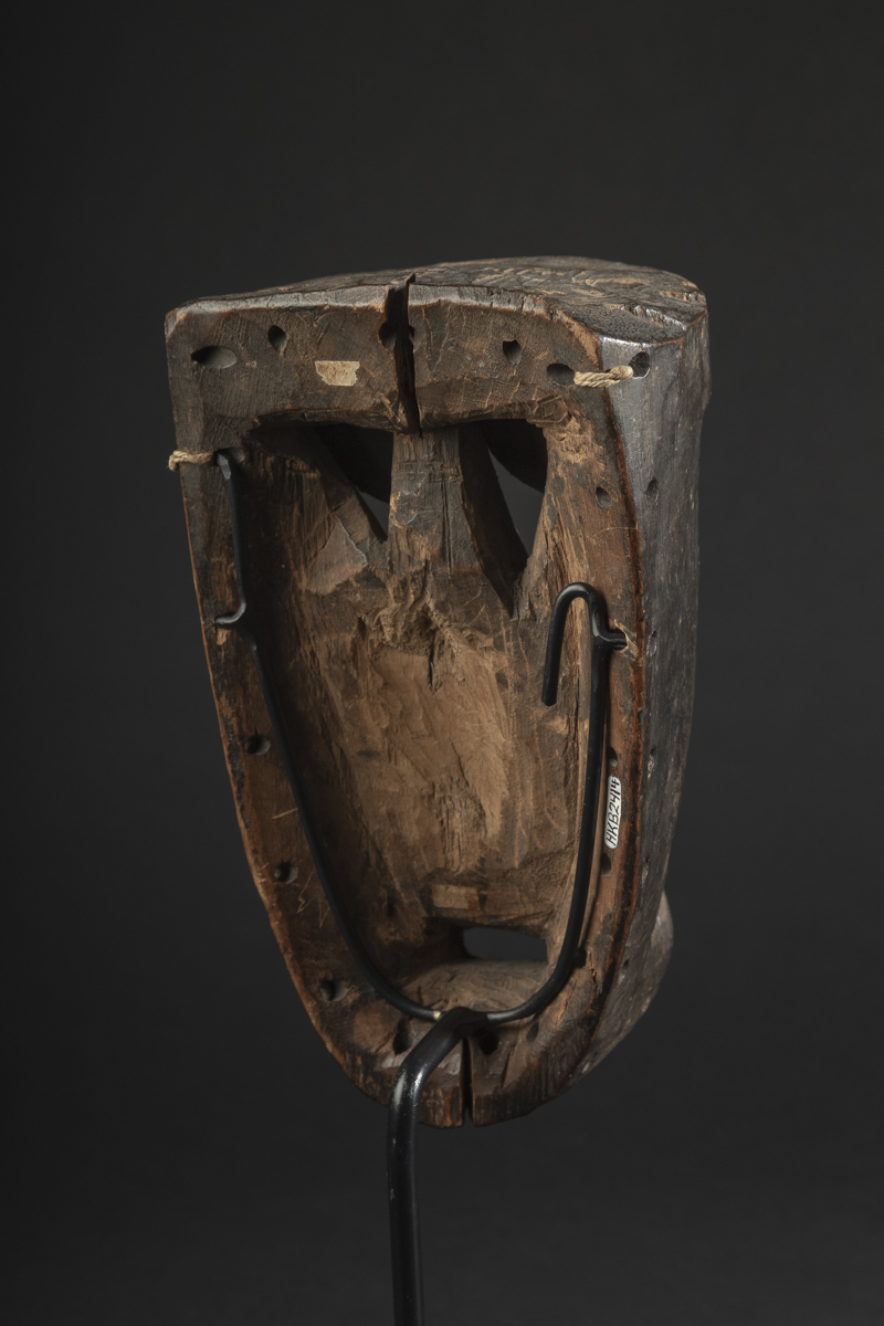 Far from the idealized naturalism of classical Dan masks, this mask (presumably a "kagle" face mask) is characterized by its highly cubist construction, and its distinctive projecting cheekbones and recessed triangular eye apertures.