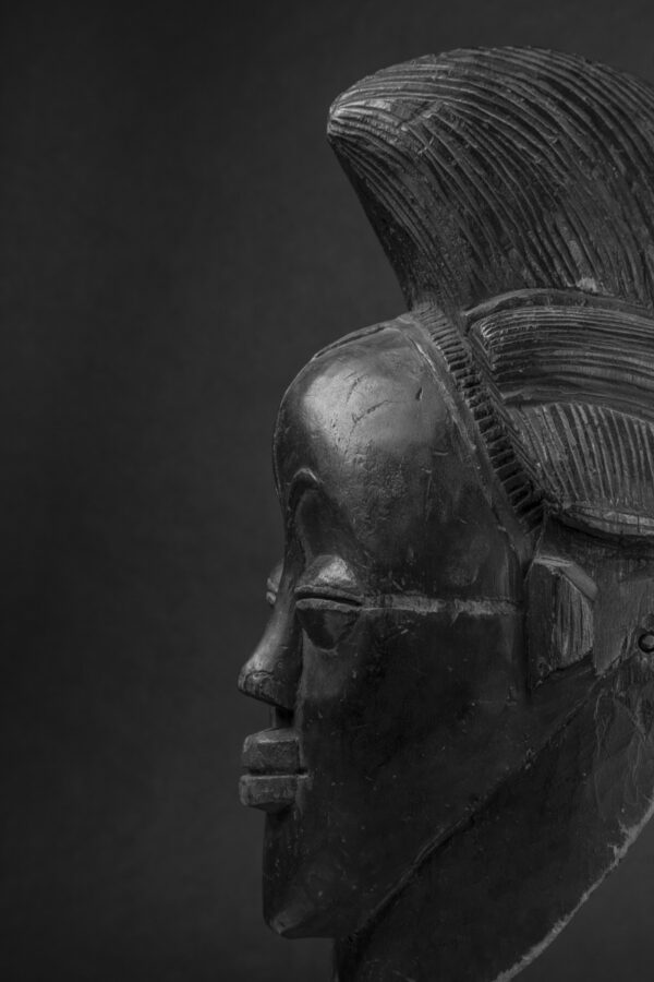 Black Punu mask are veritable icons of classical African arts. A remarkable poetry and interiority emanate from this mask.