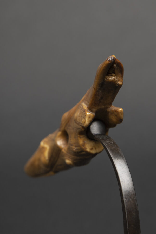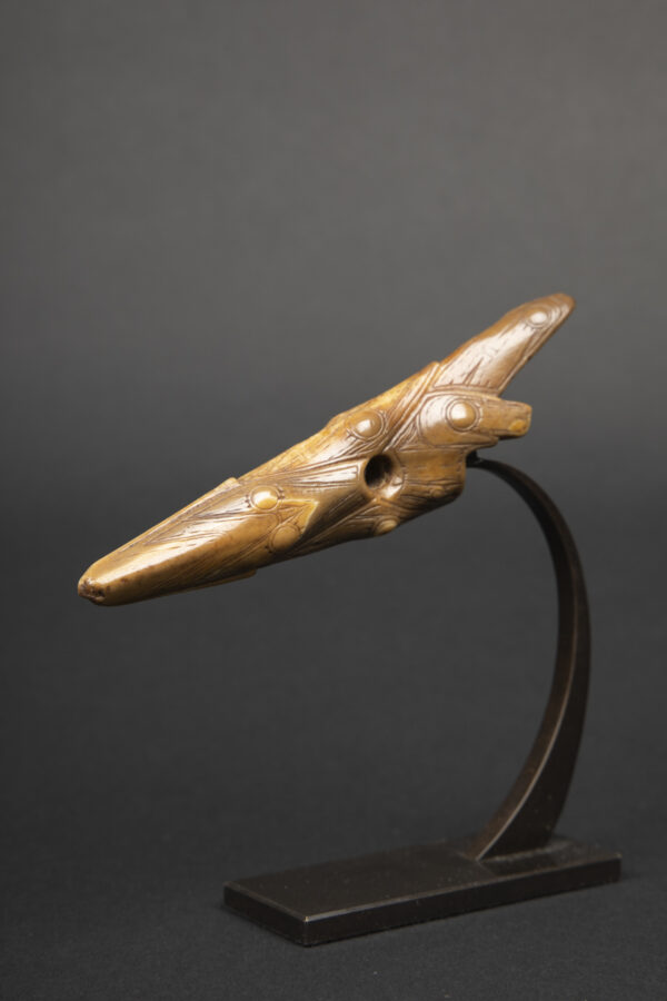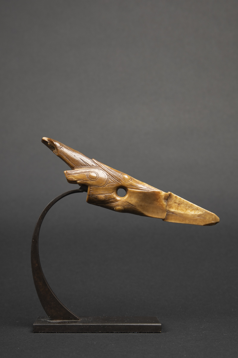 Harpoon heads were designed for speed and imbued with a lethal grace. They resemble teeth or talons, a visual means of asking the soul of the animal to give its flesh to the hunter. The finely carved elements of the harpoon served definite functional purposes; they were also endowed with supernatural power. They were passed down from generation to generation and were eventually buried in the graves of important members of the community.