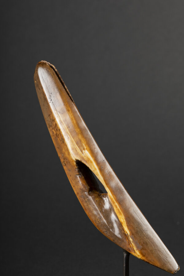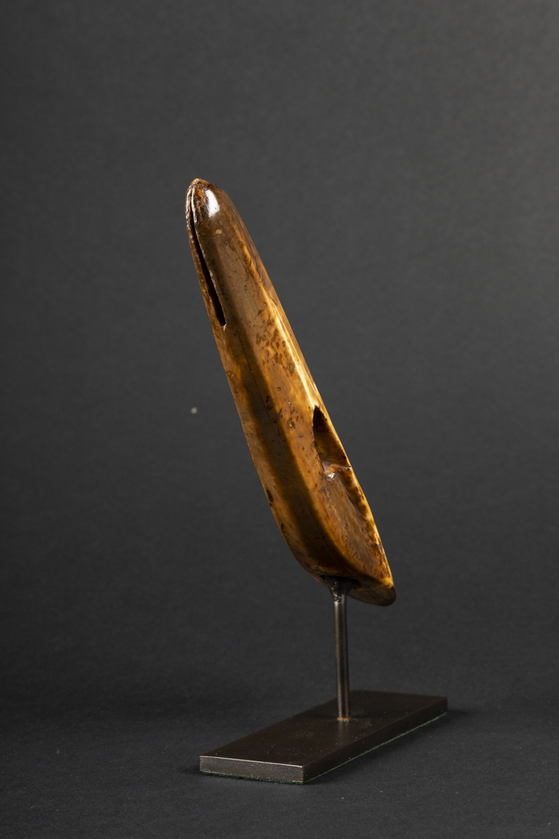 Harpoon heads were designed for speed and imbued with a lethal grace. They resemble teeth or talons, a visual means of asking the soul of the animal to give its flesh to the hunter. The finely carved elements of the harpoon served definite functional purposes; they were also endowed with supernatural power. They were passed down from generation to generation and were eventually buried in the graves of important members of the community.
