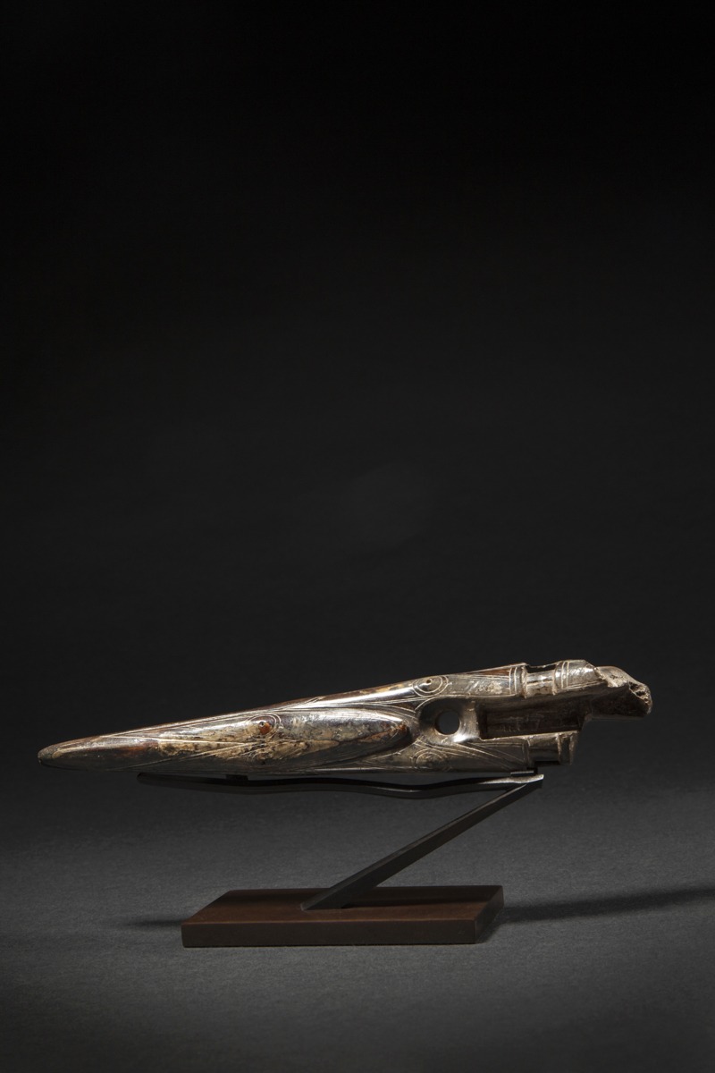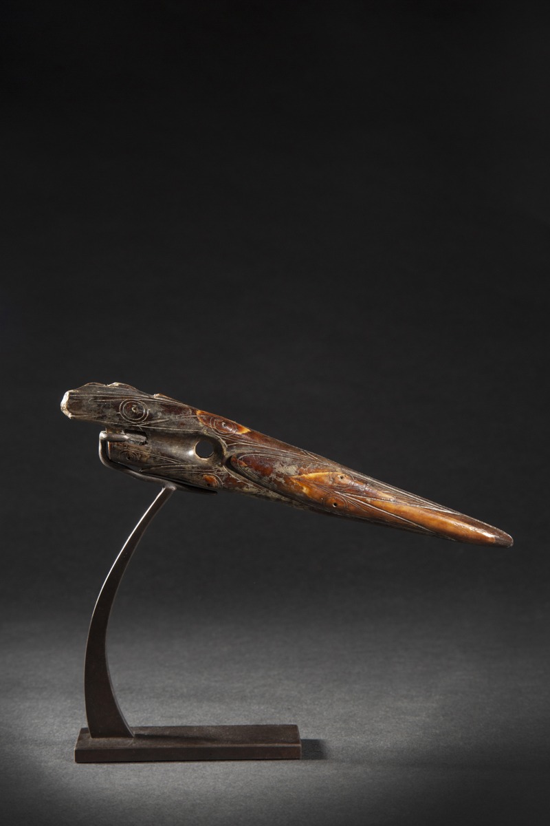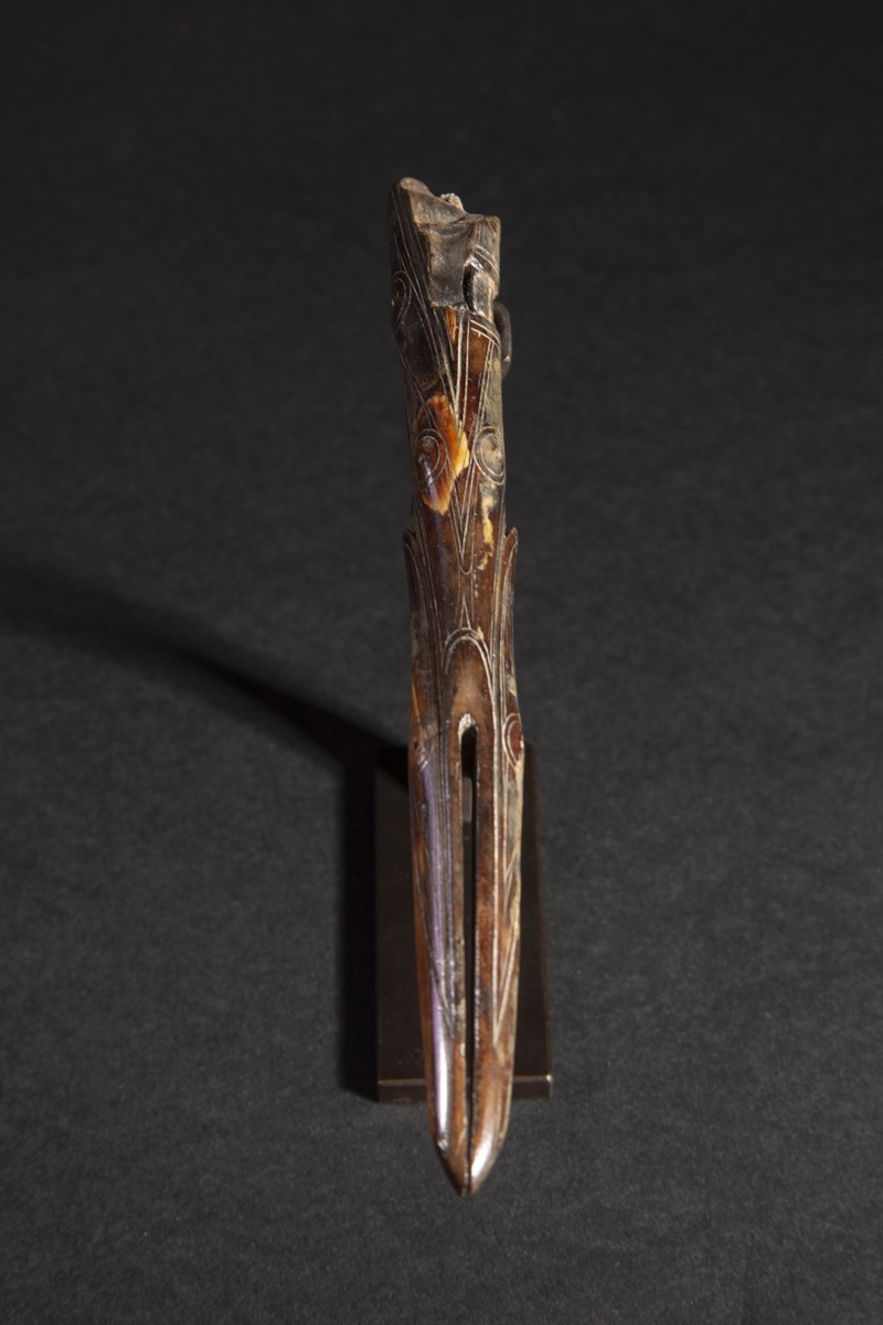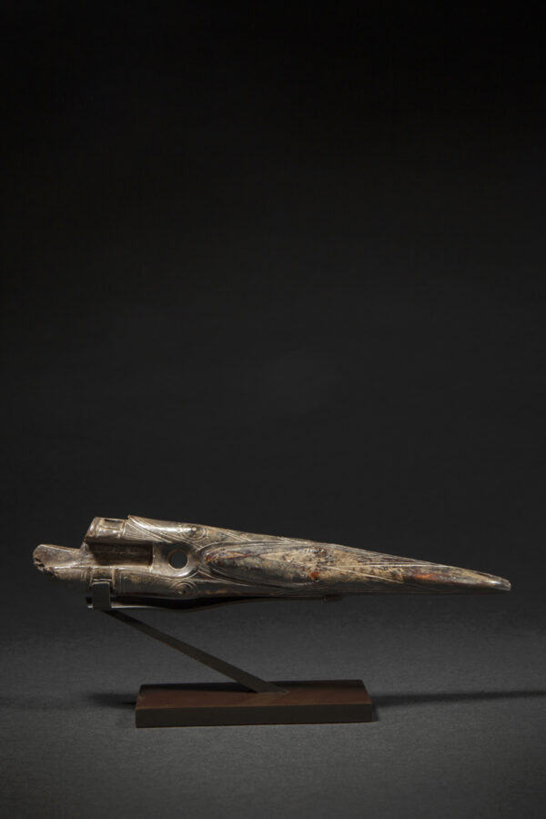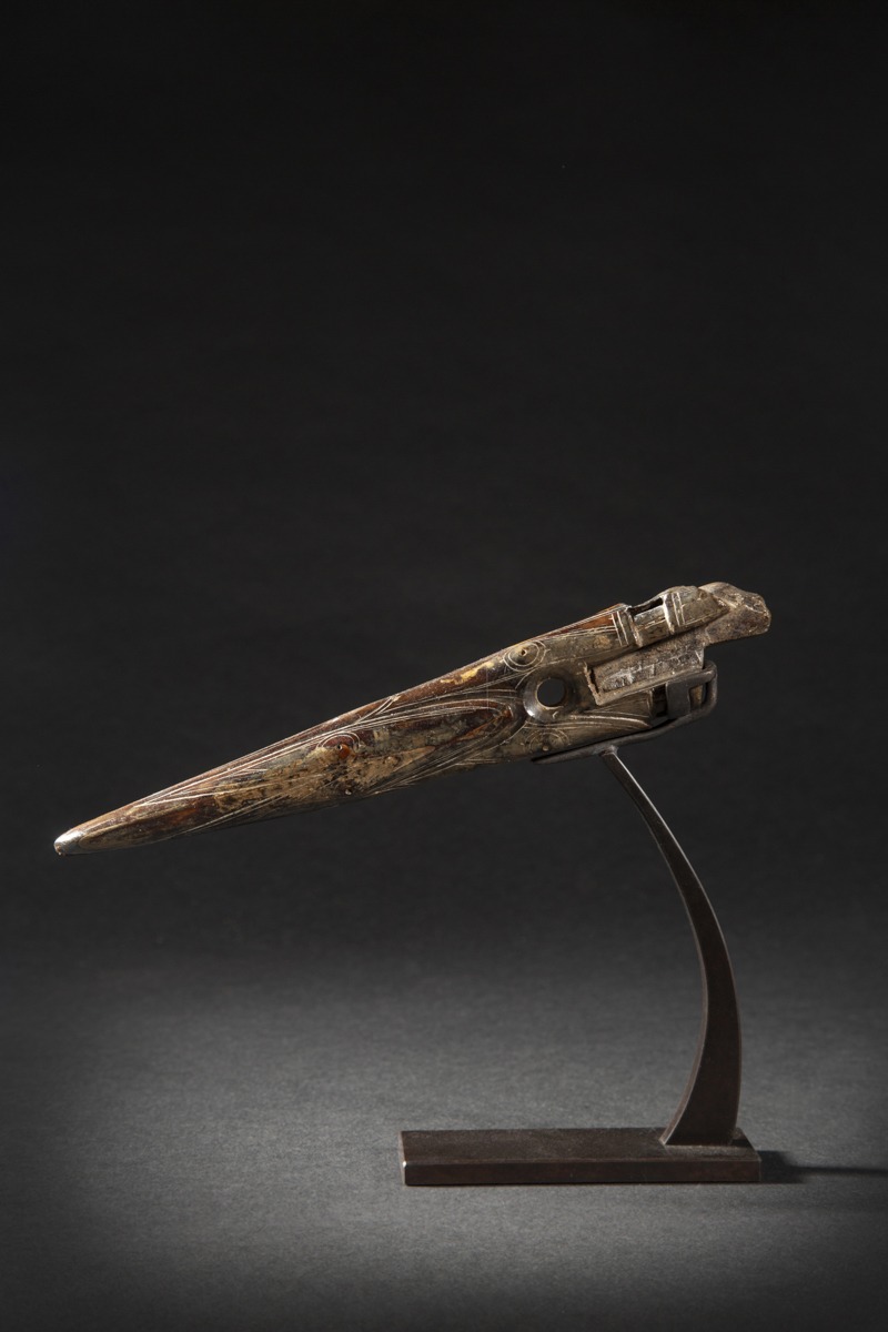 Harpoon heads were designed for speed and imbued with a lethal grace. They resemble teeth or talons, a visual means of asking the soul of the animal to give its flesh to the hunter. The finely carved elements of the harpoon served definite functional purposes; they were also endowed with supernatural power. They were passed down from generation to generation and were eventually buried in the graves of important members of the community.