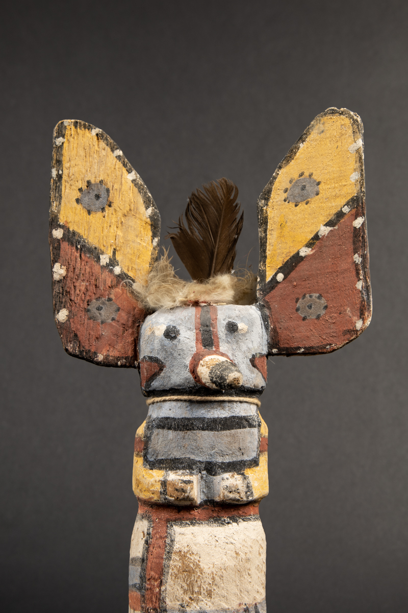 Kachina dolls (or katsinam) represent spirits or gods from the pantheon of the Pueblo peoples in the American Southwest. Given to children, kachina dolls constituted a pedagogical tool allowing them to familiarize themselves with the spiritual world and perpetuating knowledge of the founding myths on which their society was based.