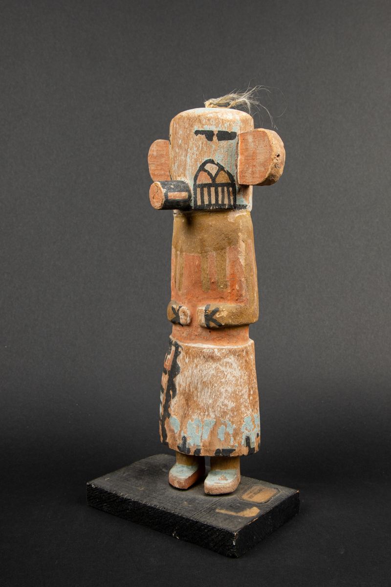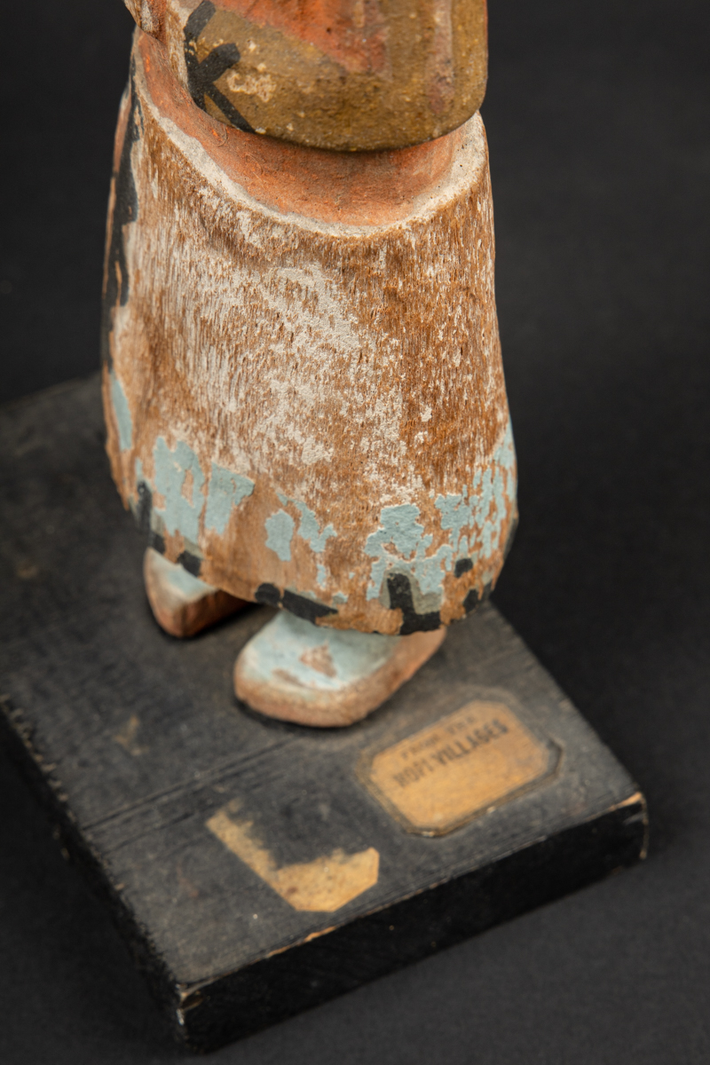 The base still features its original “From the Hopi Villages” sticker. Back in the early 20th century, these stickers were placed on Native American artworks sold in trading posts.