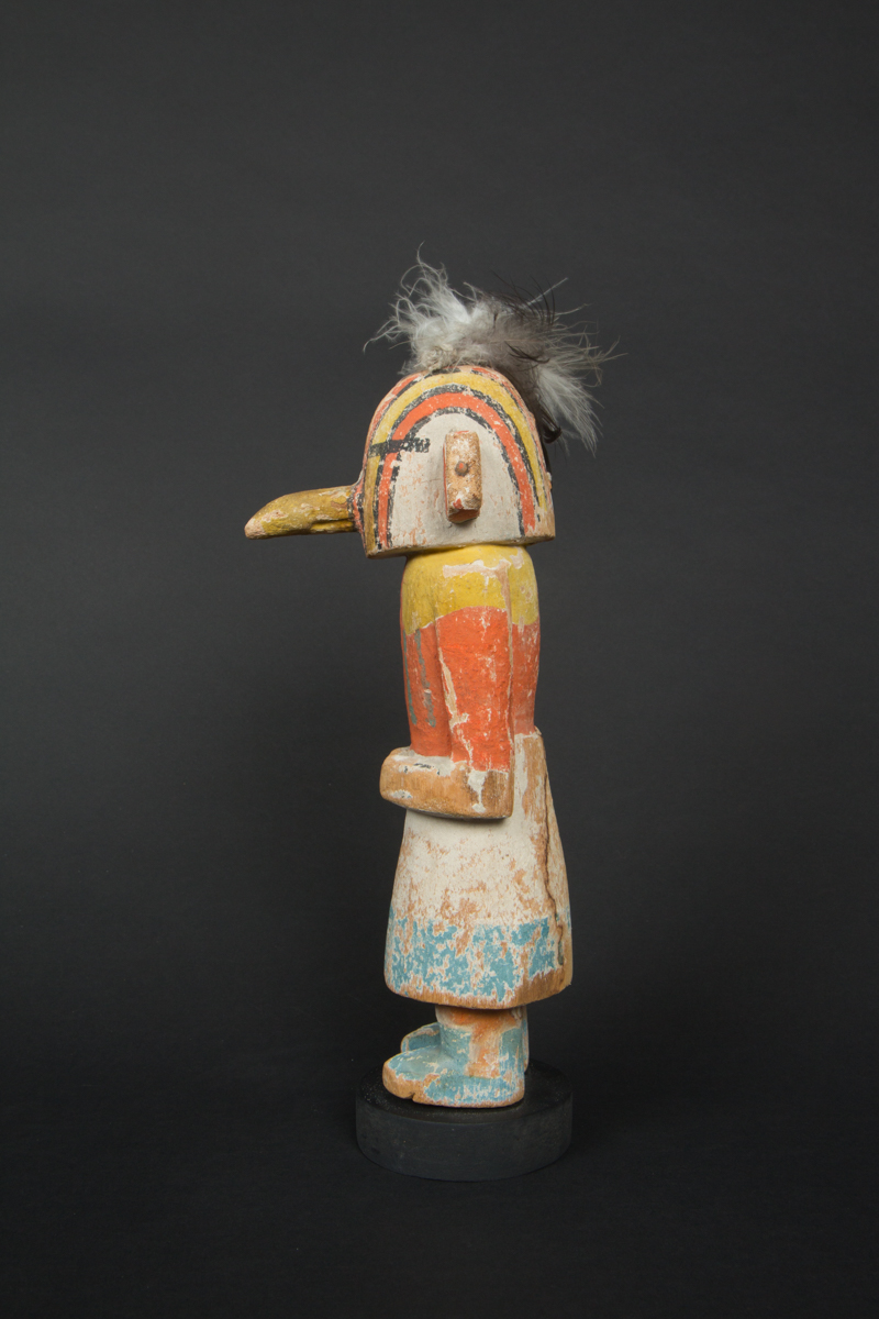Kachina dolls (or katsinam) represent spirits or gods from the pantheon of the Pueblo peoples in the American Southwest. Given to children, kachina dolls constituted a pedagogical tool allowing them to familiarize themselves with the spiritual world and perpetuating knowledge of the founding myths on which their society was based.
