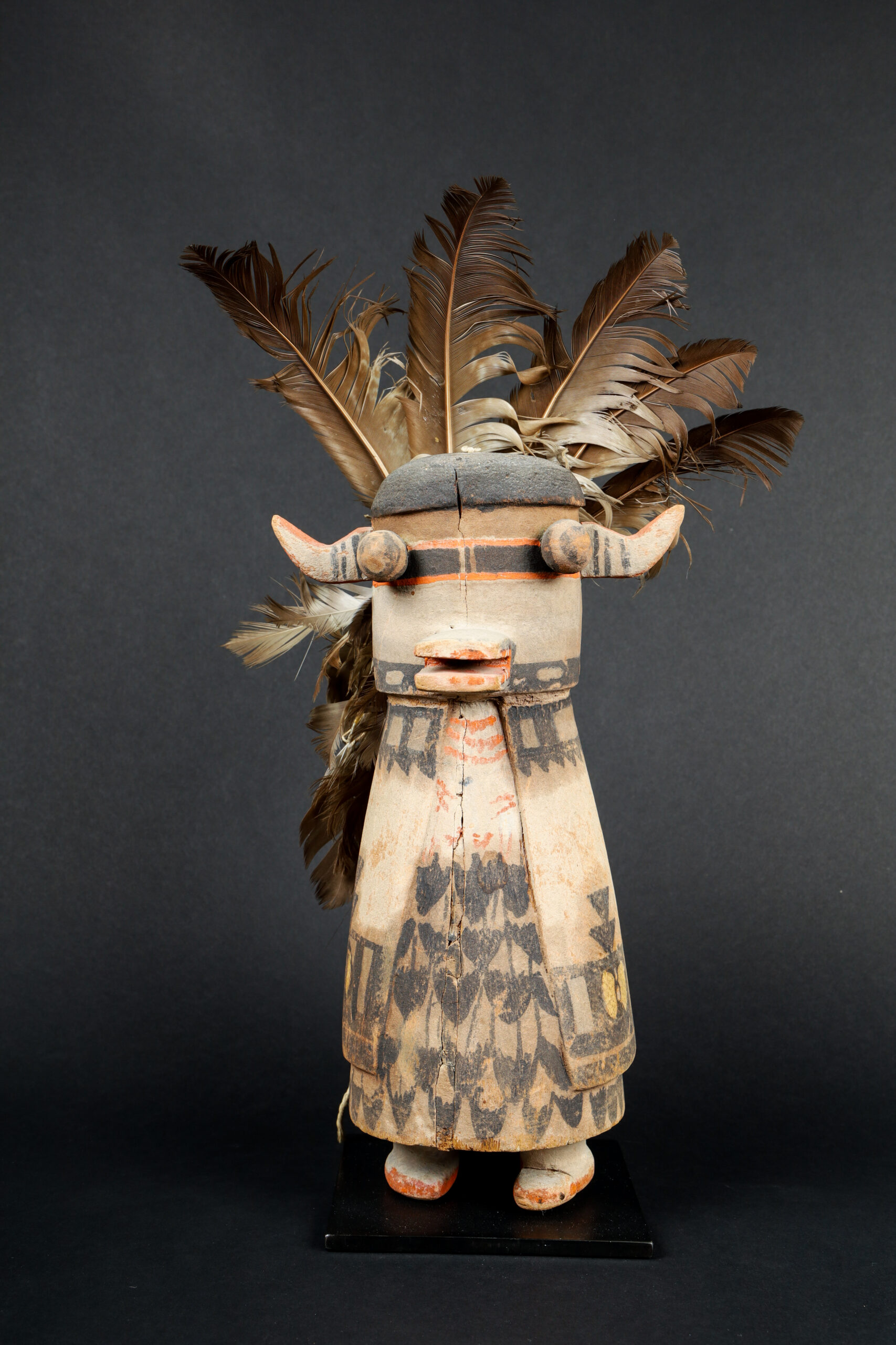 Kachina dolls (or katsinam) represent spirits or gods from the pantheon of the Pueblo peoples in the American Southwest. Given to children, kachina dolls constituted a pedagogical tool allowing them to familiarize themselves with the spiritual world and perpetuating knowledge of the founding myths on which their society was based.