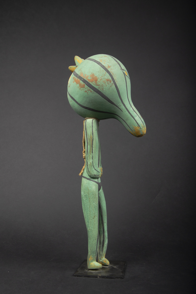 Patung Katsina, or Squash Kachina, is a chief kachina of wuya for the Pumpkin Clan. There are relatively few members of this clan left, and consequently their stories are not very well known. Although the Squash Kachina's function as a wuya are unknown, he does appear as a runner on First Mesa.