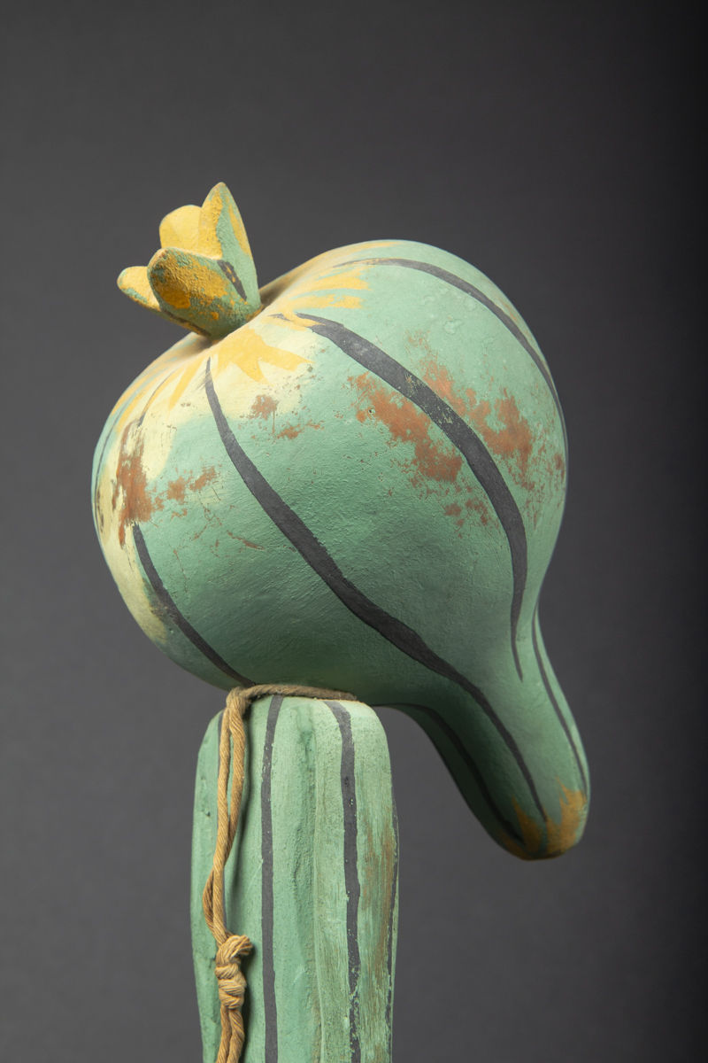 Plants are of great importance to the Hopi, because of their dependence upon them for food. As such, many kachinas in the Hopi pantheon refer to plants. Corn is the most important source of food, and as such, the most prevalent type of kachinas. Other plants and flowers are also depicted as Kachina spirits, such as the squash kachina presented here known in Hopi language as Patung.