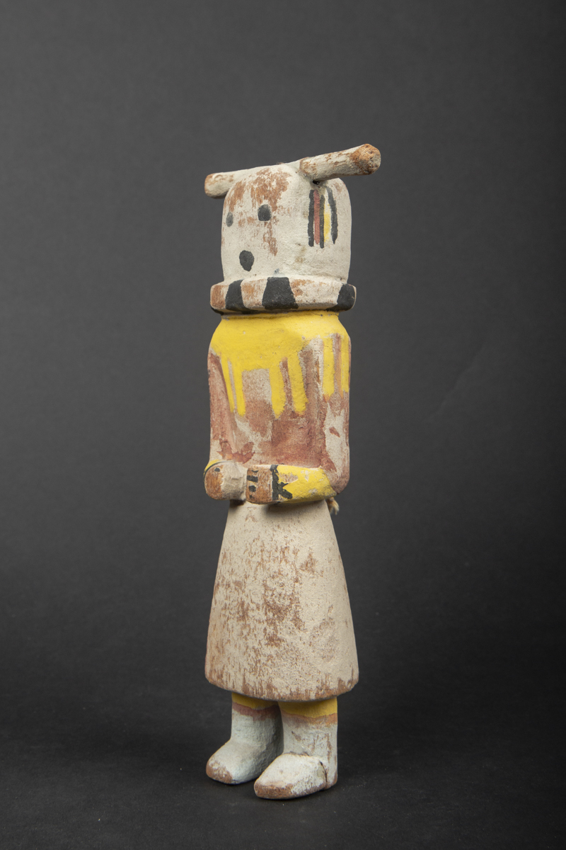 Kachina dolls (or katsinam) represent spirits or gods from the pantheon of the Pueblo peoples in the American Southwest. Given to children, kachina dolls constituted a pedagogical tool allowing them to familiarize themselves with the spiritual world and perpetuating knowledge of the founding myths on which their society was based.