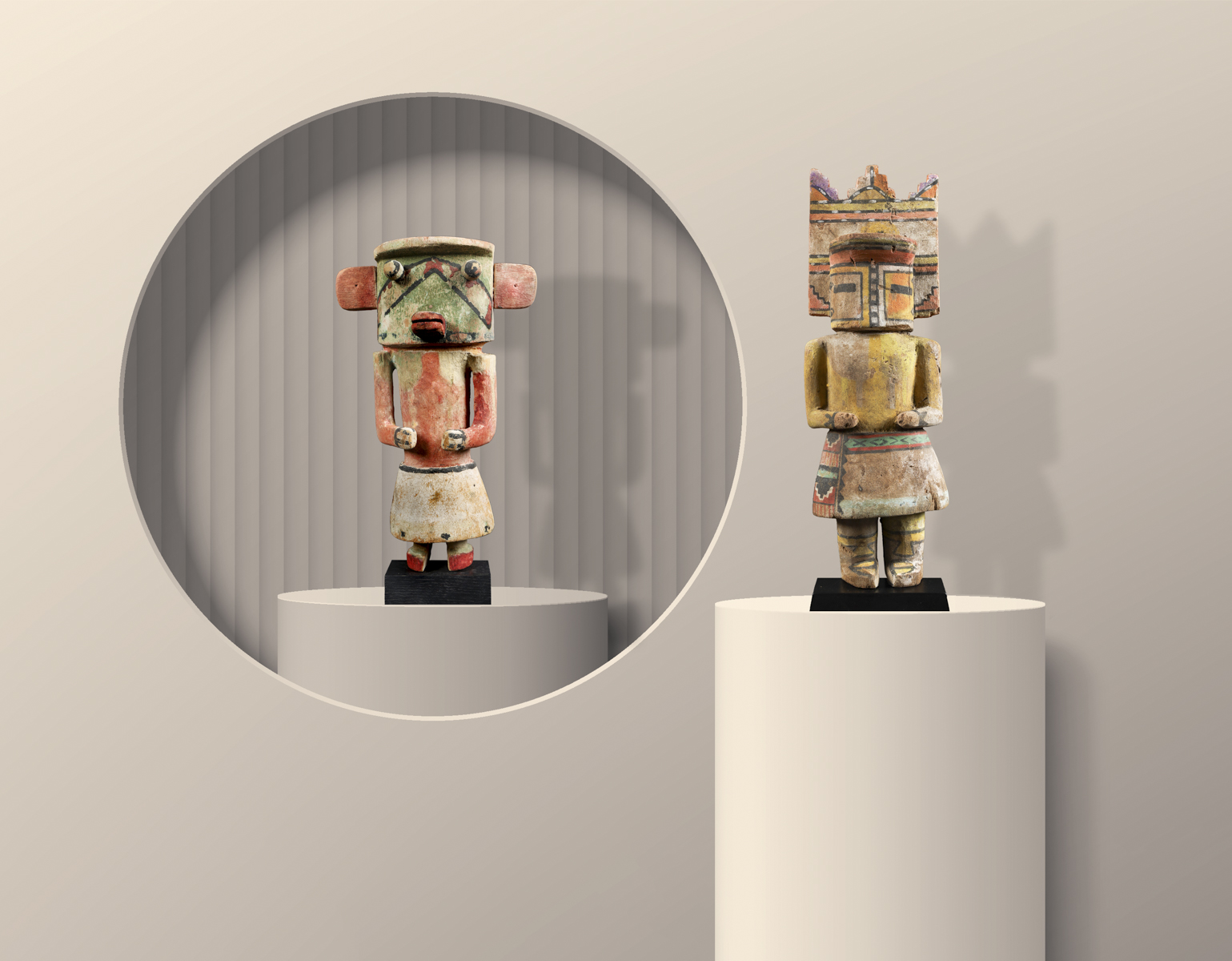 Kachina dolls (or katsinam) represent spirits or gods from the pantheon of the Pueblo peoples in the American Southwest. Given to children, kachina dolls constituted a teaching tool allowing them to familiarize themselves with the spiritual world and perpetuating knowledge of the founding myths on which their society was based.