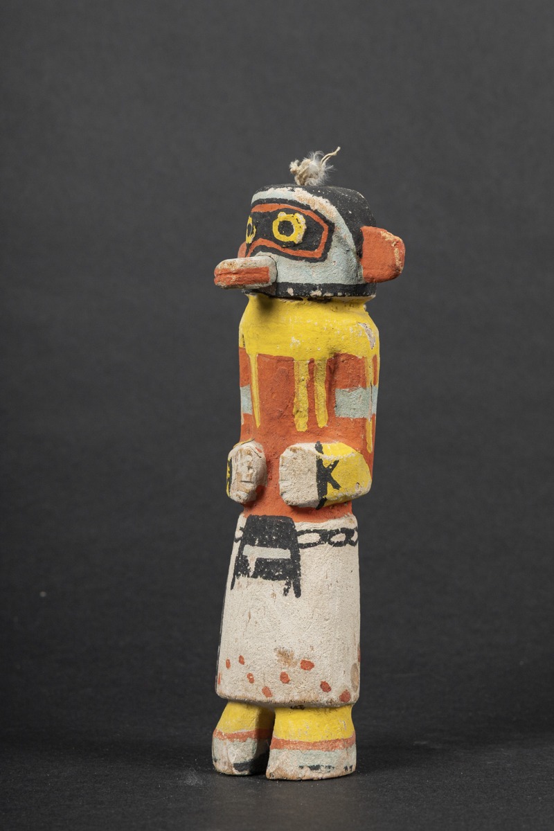 Les poupées Kachina (Katsinam) représentent les esprits ou dieux du panthéon des Indiens Pueblo du Sud-Ouest des États-Unis. Offertes aux enfants, elles constituaient un outil pédagogique leur permettant de se familiariser avec le monde spirituel et de perpétuer la connaissance des mythes fondateurs au sein de la société.
