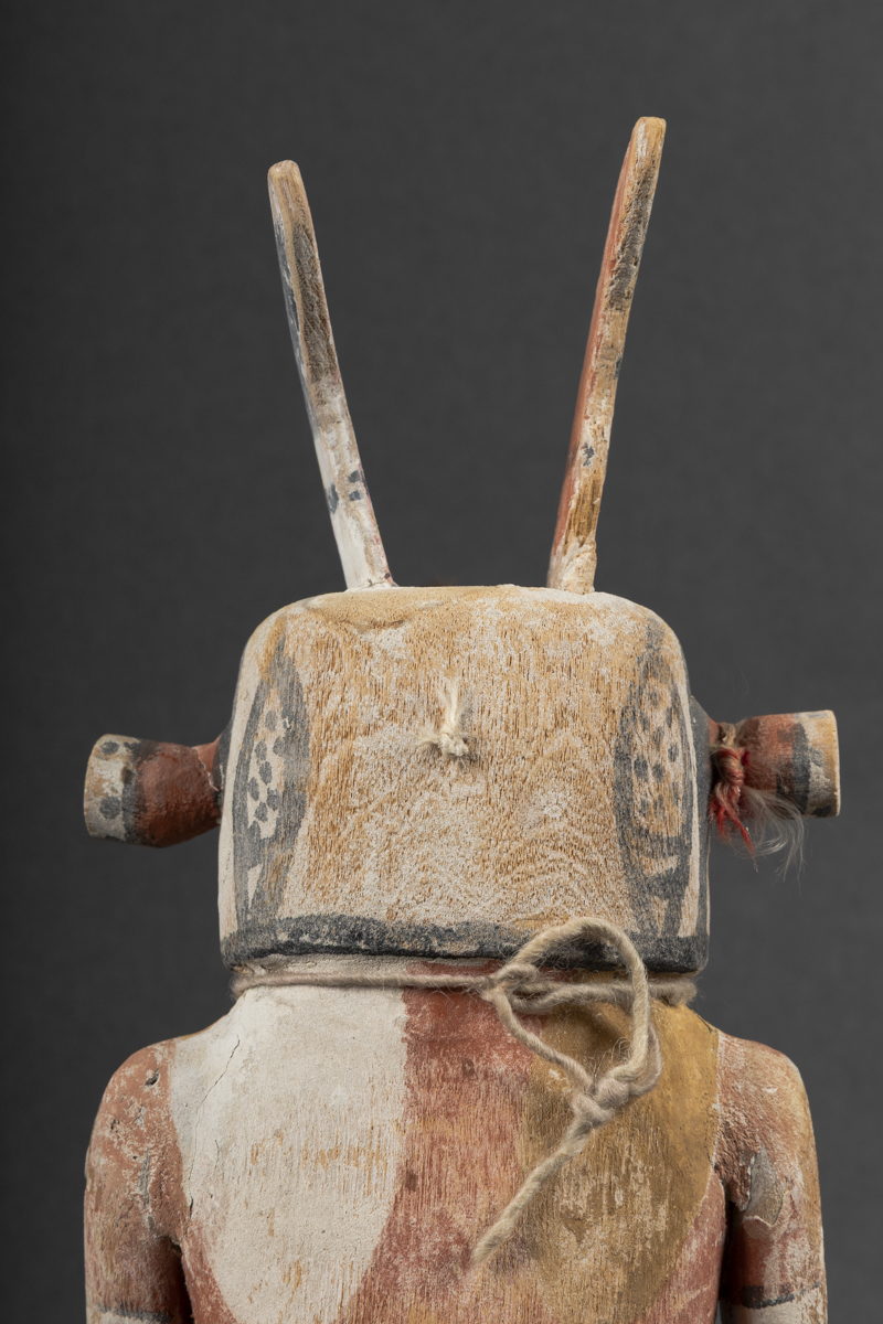 Cette figure est l'oeuvre du sculpteur Wilson Tawaquaptewa (1873-1960). Tawaquaptewa était un grand chef religieux du village Hopi d'Oraibi et maître sculpteur. Il a travaillé entre les années 1890 et les années 1950. Tout en s’appuyant rigoureusement sur les techniques rituelles de sculpture des kachinas, W. Tawaquaptewa mêlait généralement dans ses kachinas des éléments de la symbolique Hopi ancestrale et des éléments de création personnelle (agencements de formes, de motifs et de couleurs).