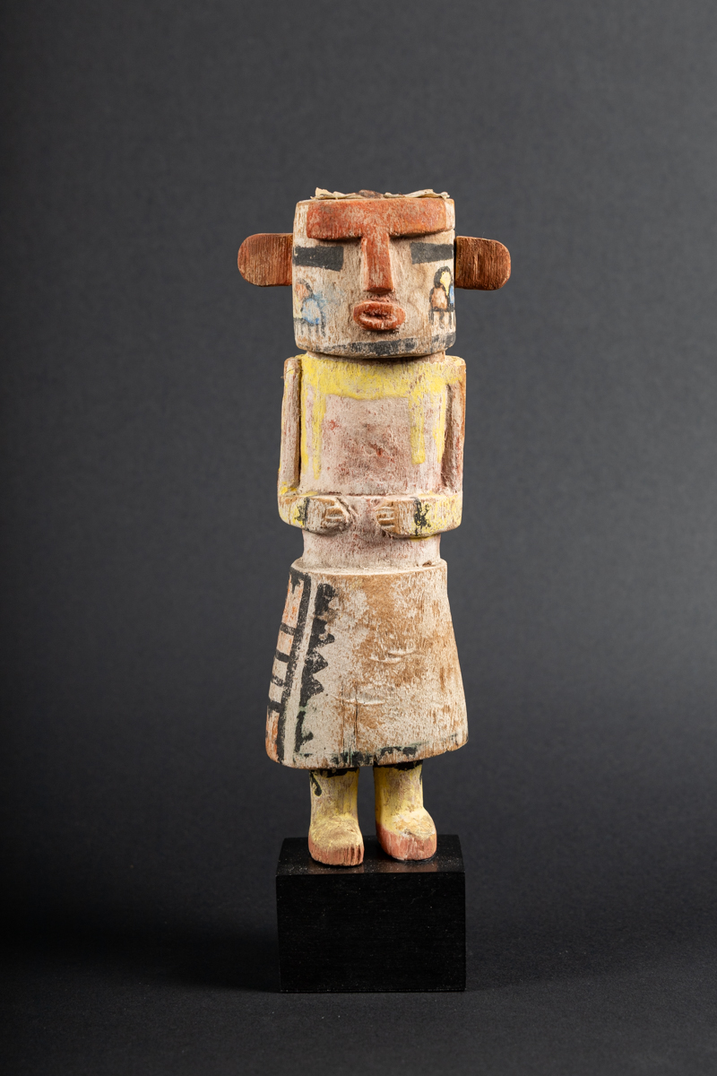 Les poupées Kachina (Katsinam) représentent les esprits ou dieux du panthéon des Indiens Pueblo du Sud-Ouest des États-Unis. Offertes aux enfants, elles constituaient un outil pédagogique leur permettant de se familiariser avec le monde spirituel et de perpétuer la connaissance des mythes fondateurs au sein de la société.