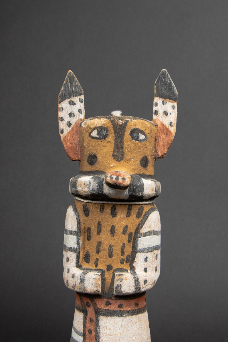 Kachina dolls (or katsinam) represent spirits or gods from the pantheon of the Pueblo peoples in the American Southwest. Given to children, kachina dolls constituted a pedagogical tool allowing them to familiarize themselves with the spiritual world and perpetuating knowledge of the founding myths on which their society was based.