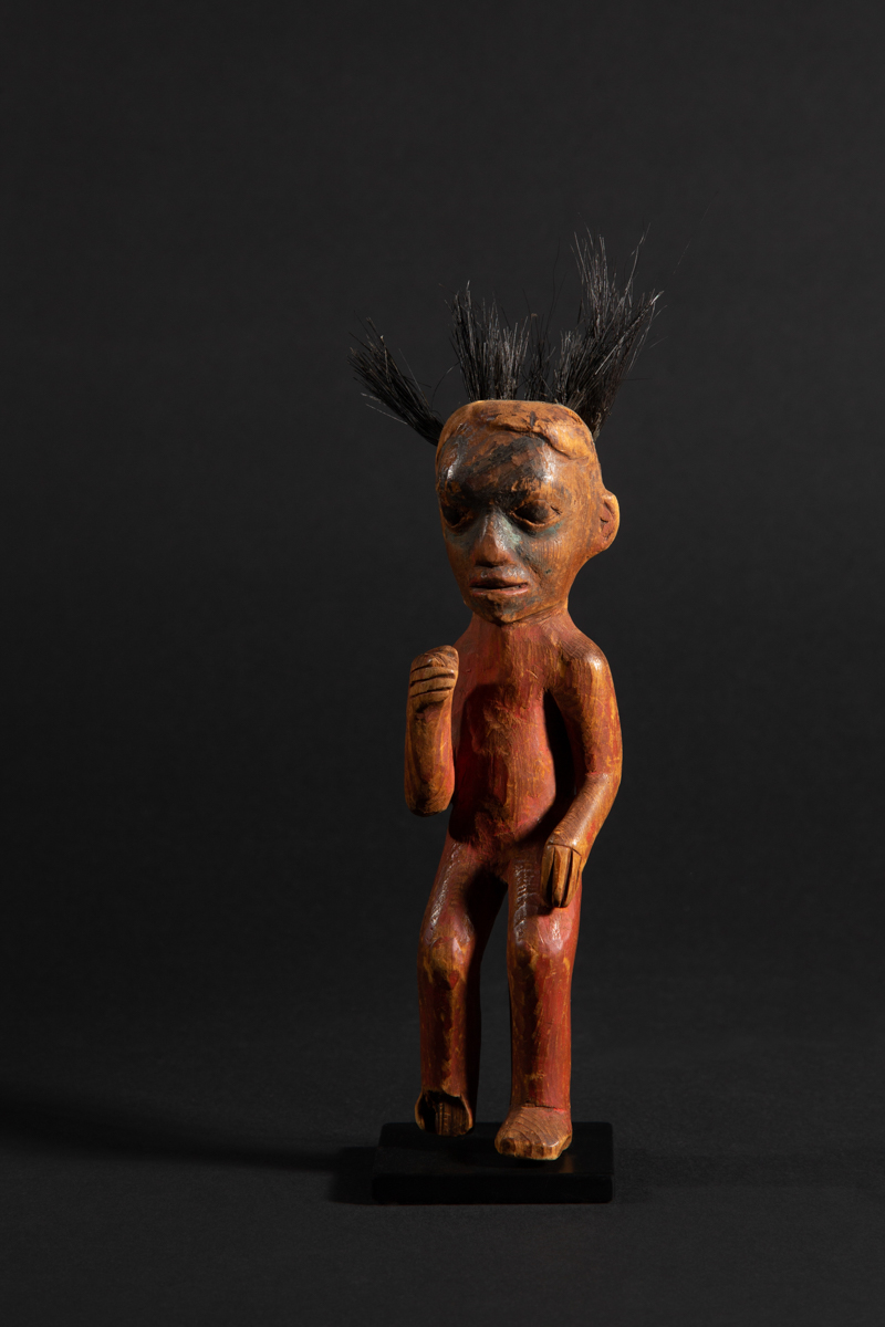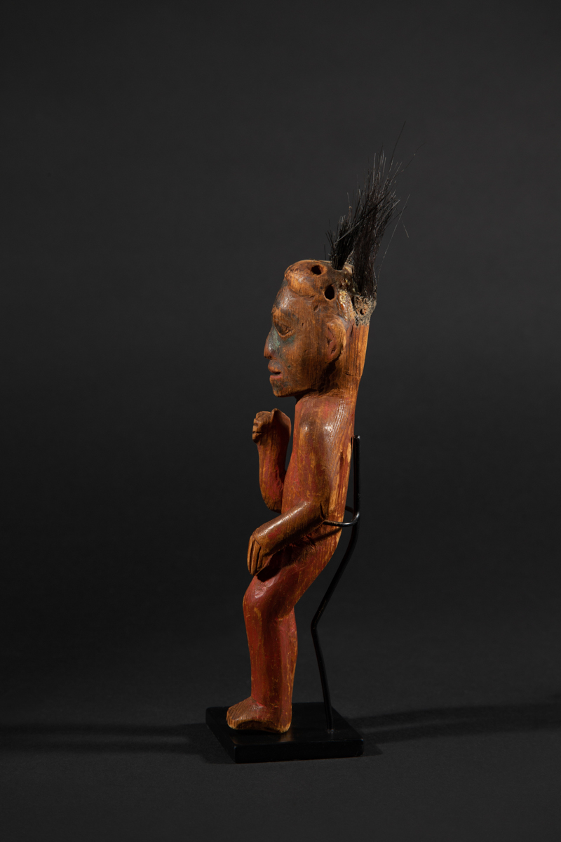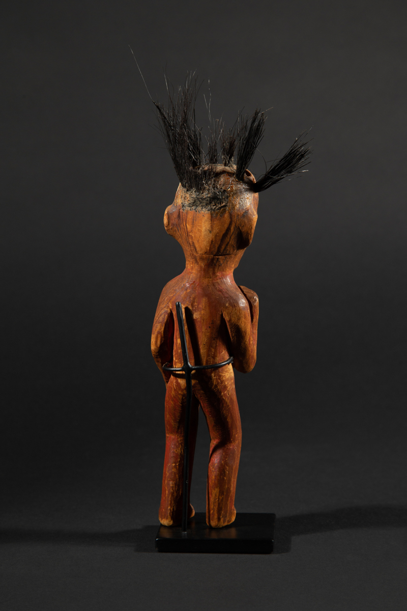 Bois sculpté (cèdre rouge), pigments et cheveux humain