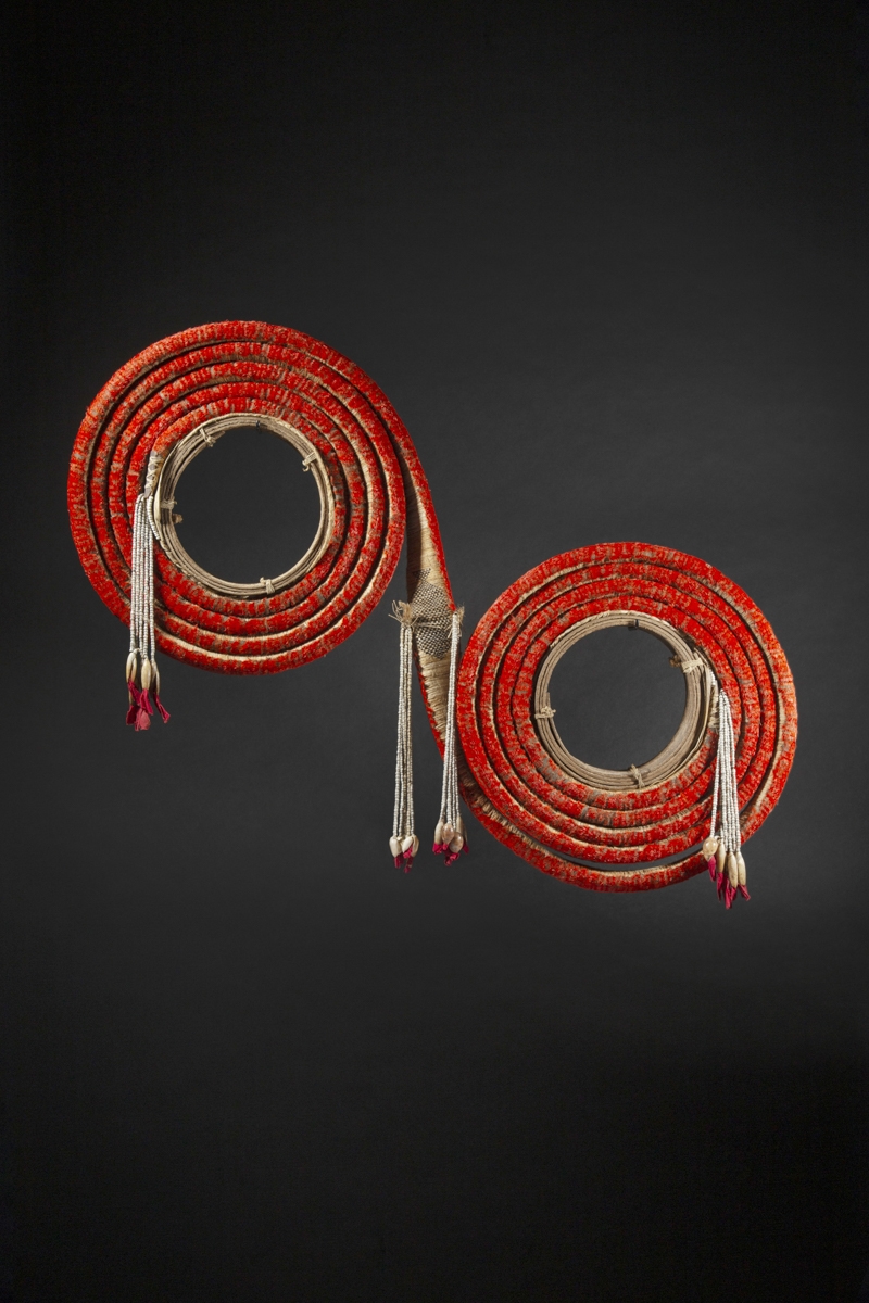 These red-feather money rolls from the Santa Cruz Islands constitute one of the Pacific’s most spectacular and graphic forms of currency.