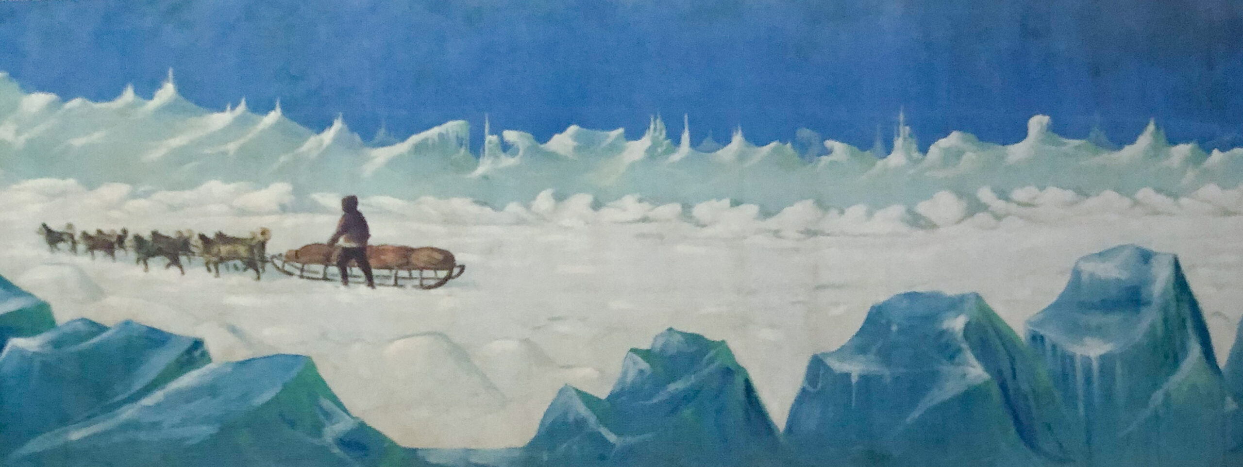Painted décor depicting Robert Peary’s expedition to the North Pole in 1908-1909